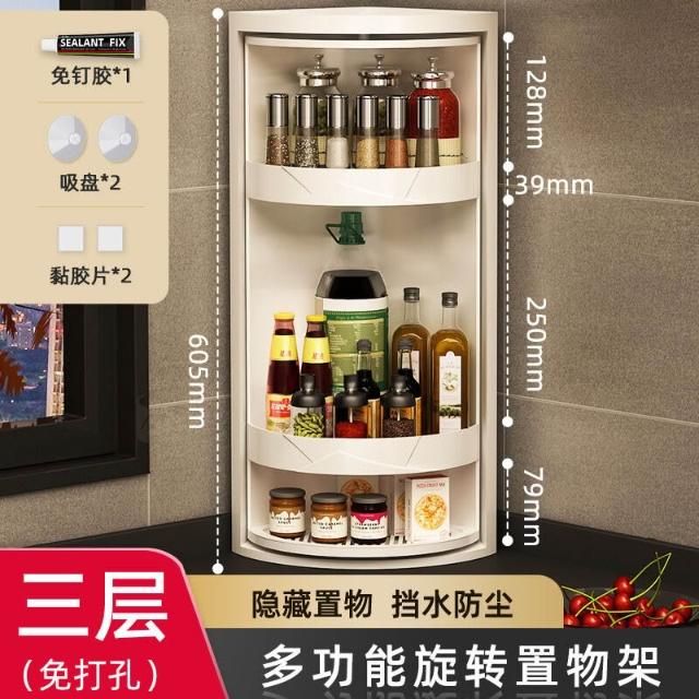 新品熱銷 多功能旋轉置物架調料架收納盒廚房收納可旋轉調味品雙層轉盤圓形