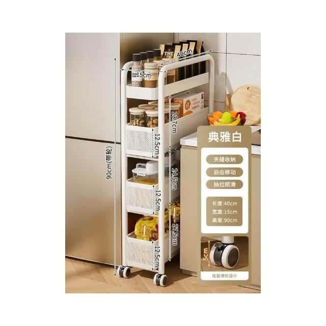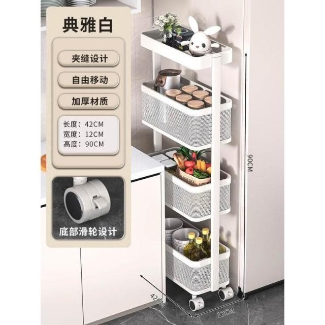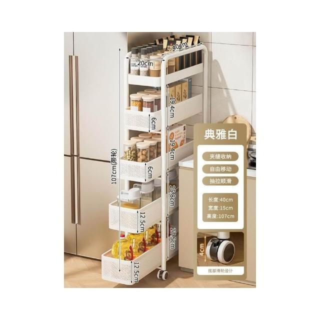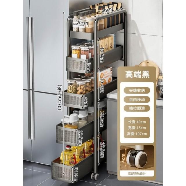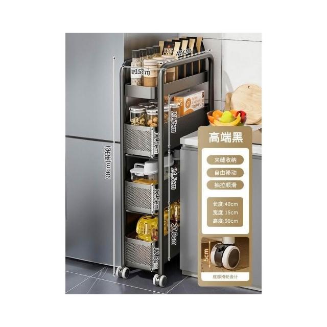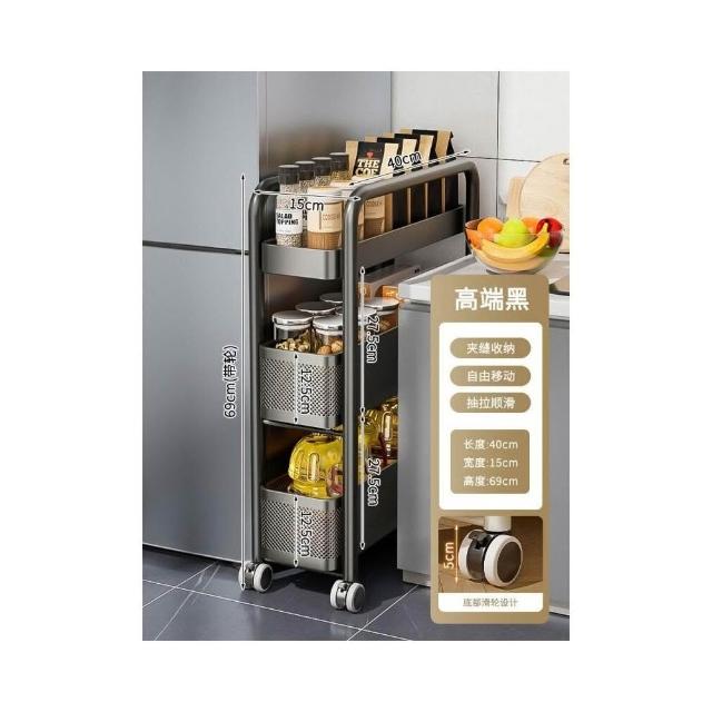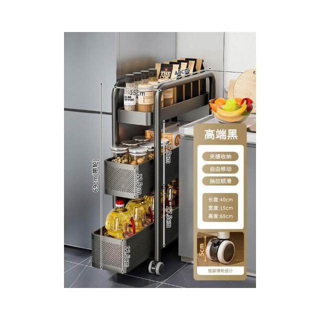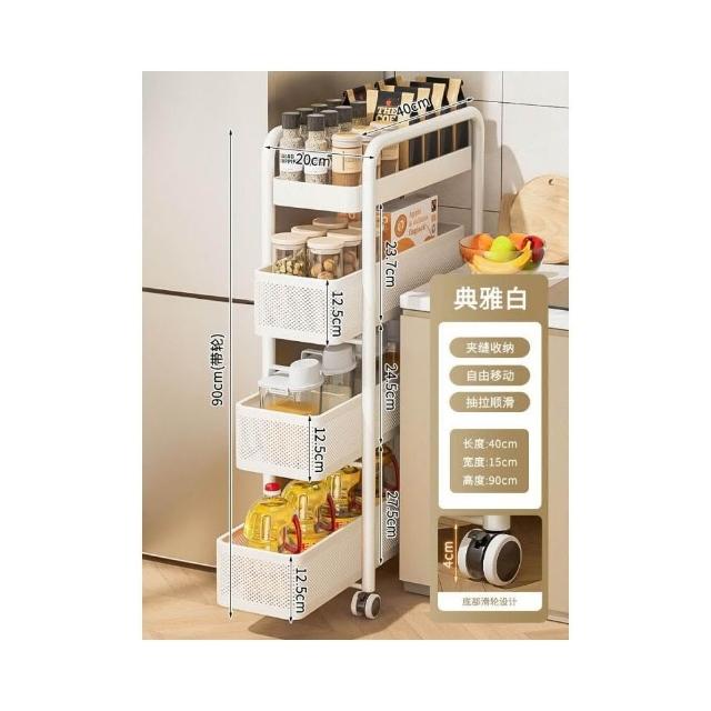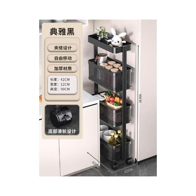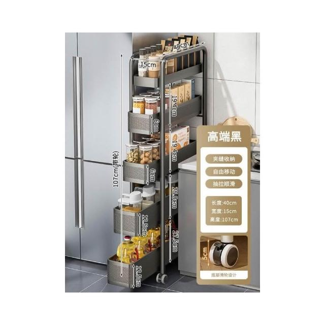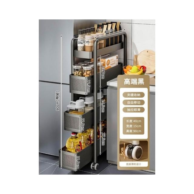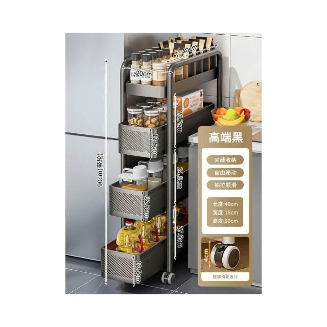 不銹鋼廚房夾縫置物架 冰箱側面抽拉櫃 小推車極窄縫隙收納櫃 超薄置物櫃 收納架 鐵架子