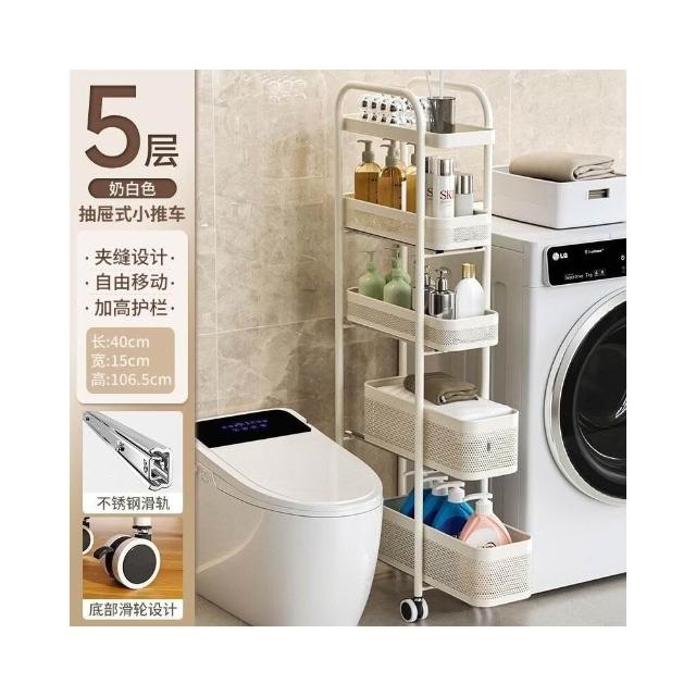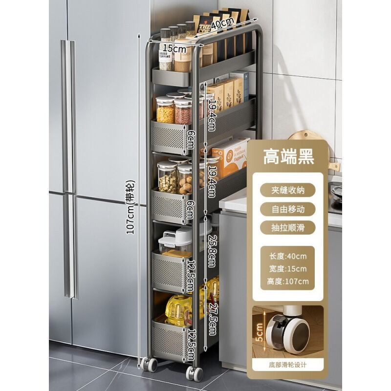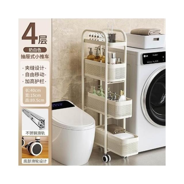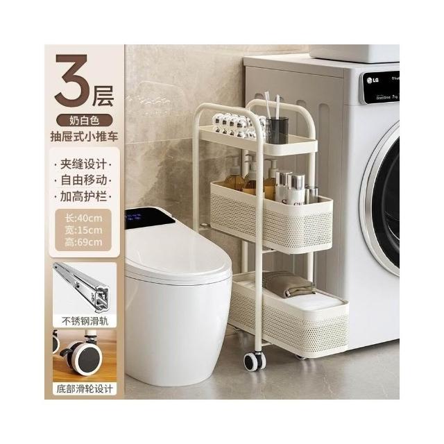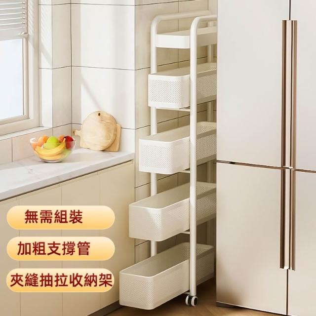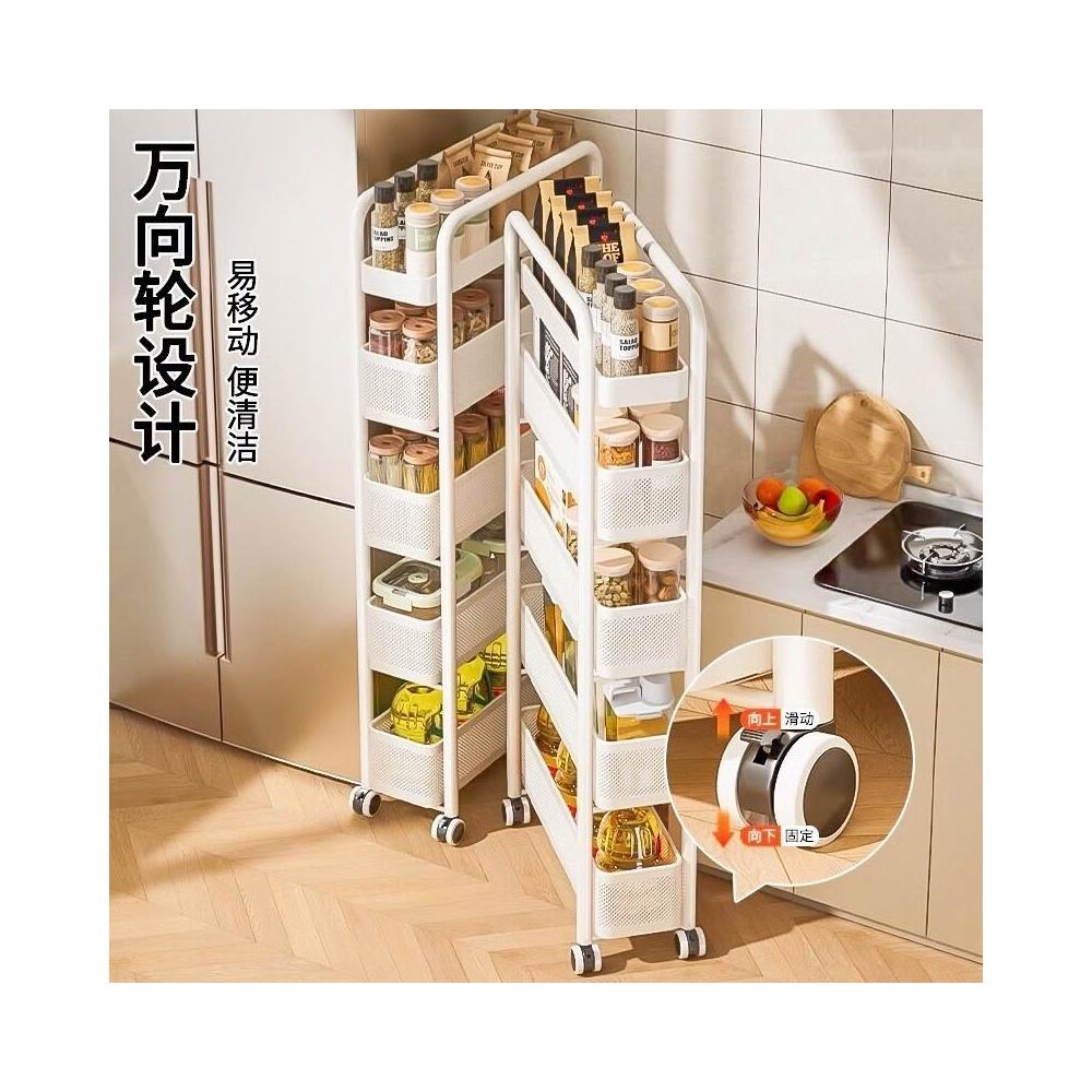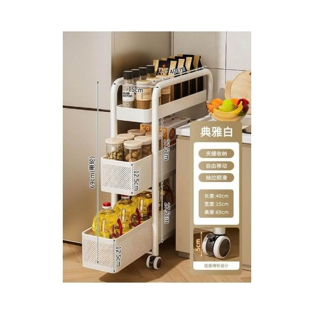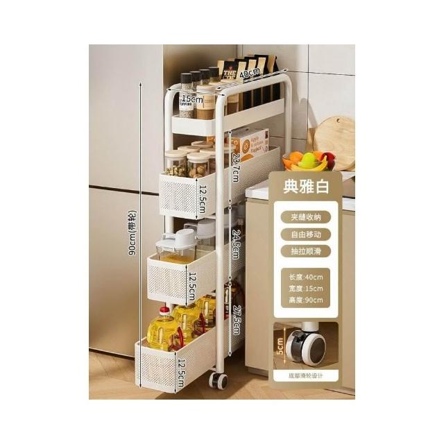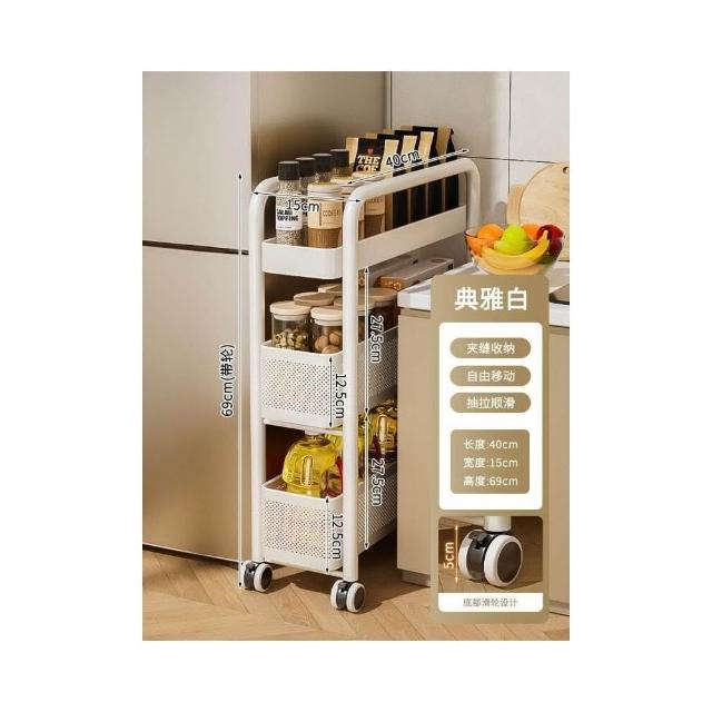 不銹鋼廚房夾縫置物架 冰箱側面抽拉櫃 小推車極窄縫隙收納櫃 超薄置物櫃 收納架 鐵架子