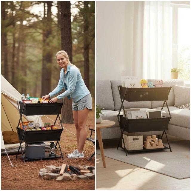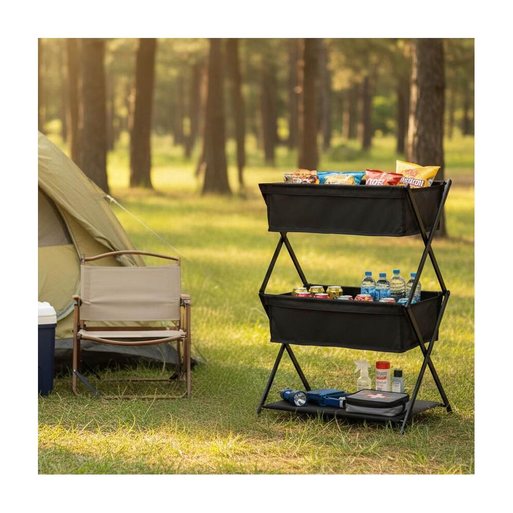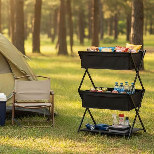 熱銷 免運 新款定製便攜式出遊野餐燒烤收納架儲物架戶外露營三層折疊置物架