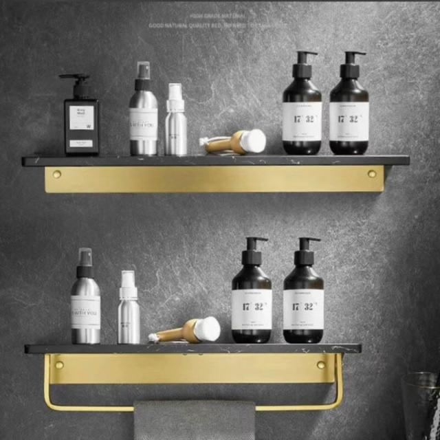 新品熱銷 衛生間收納架浴室壁掛輕奢大理石毛巾架輕奢風洗漱臺化妝品置物架