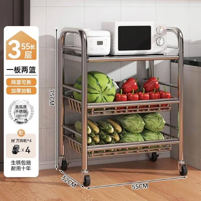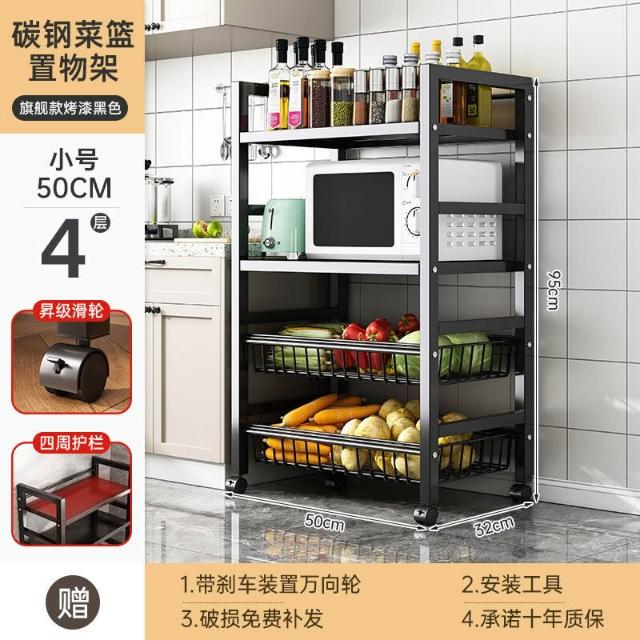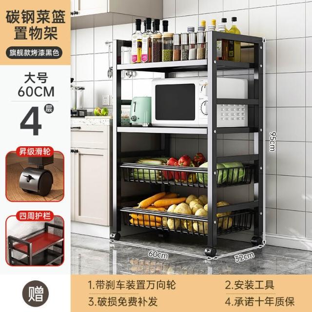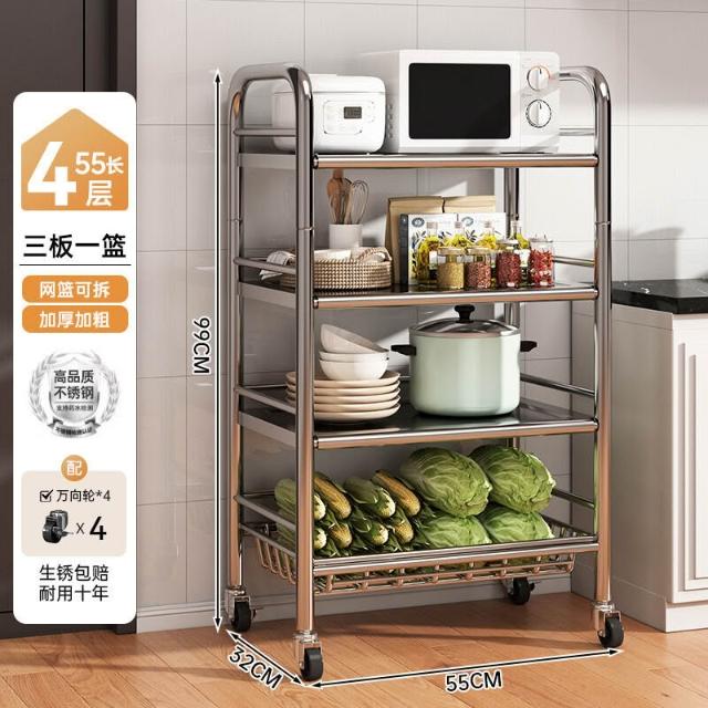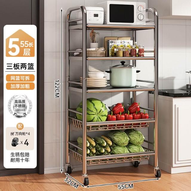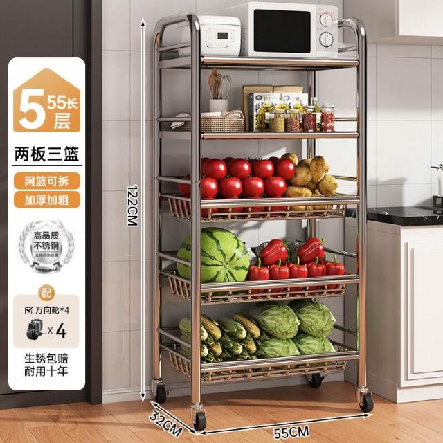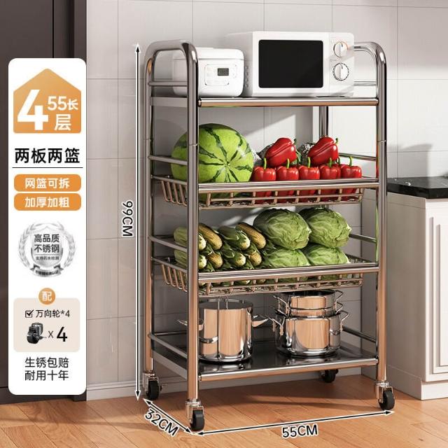 免運 廚房不銹鋼置物架家用落地多功能果蔬微波爐收納架多層小架子貨架