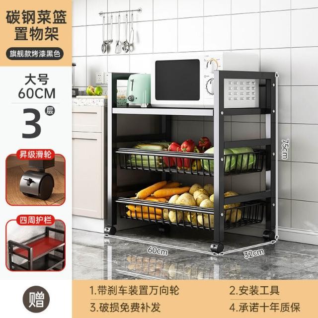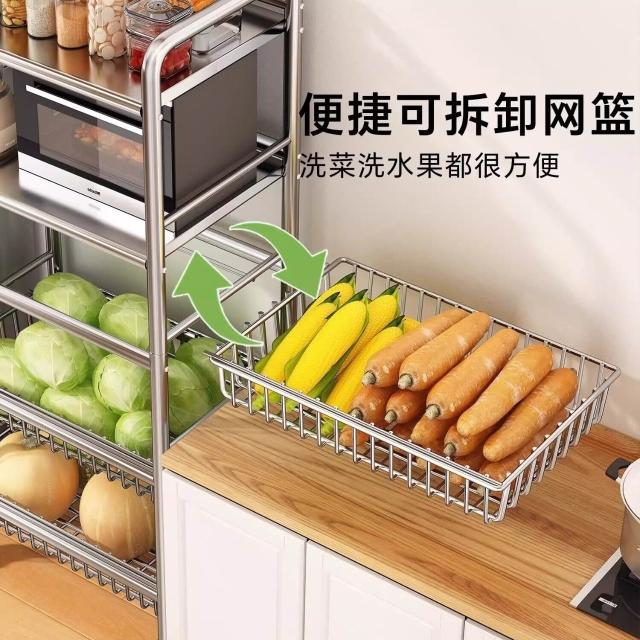 免運 廚房不銹鋼置物架家用落地多功能果蔬微波爐收納架多層小架子貨架