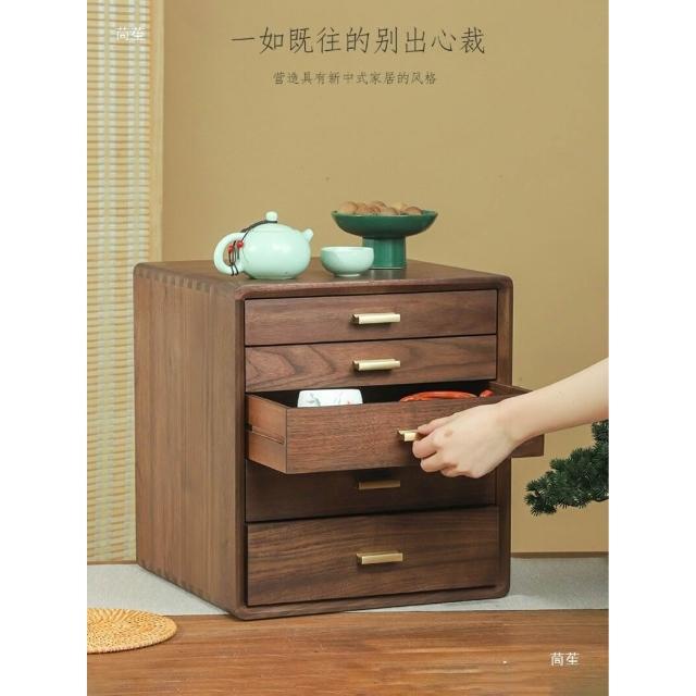 收納神器 黑胡桃木多層抽屜收納盒玄關桌面實木辦公文件收納櫃子雜物儲物箱