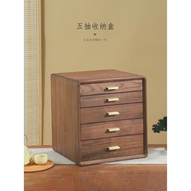 收納神器 黑胡桃木多層抽屜收納盒玄關桌面實木辦公文件收納櫃子雜物儲物箱