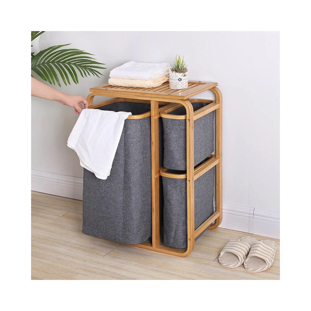 新品熱銷 ins風北歐可折疊楠竹分類收納筐 棉麻收納架臟衣籃臟衣簍家用