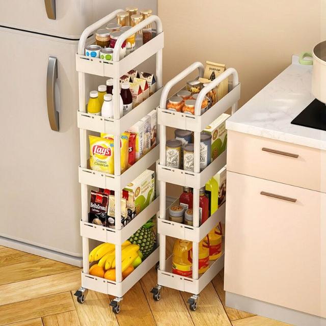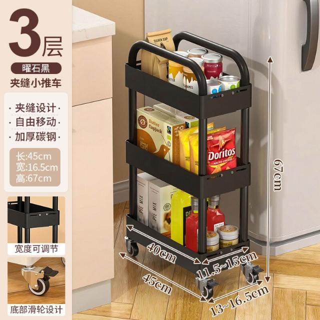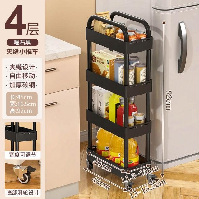 热销 廚房多功能夾縫置物架多層新款小推車可伸縮冰箱側面極窄縫收納架