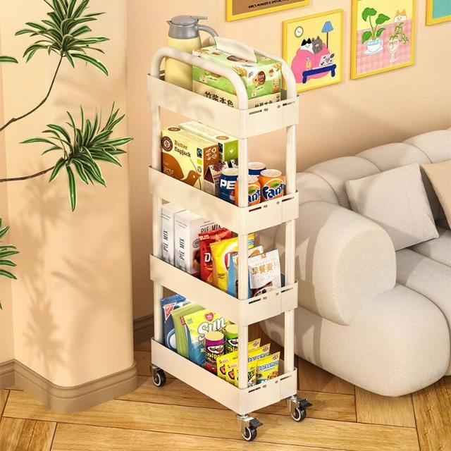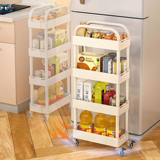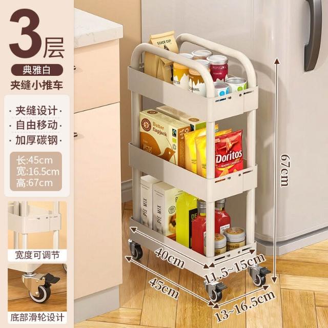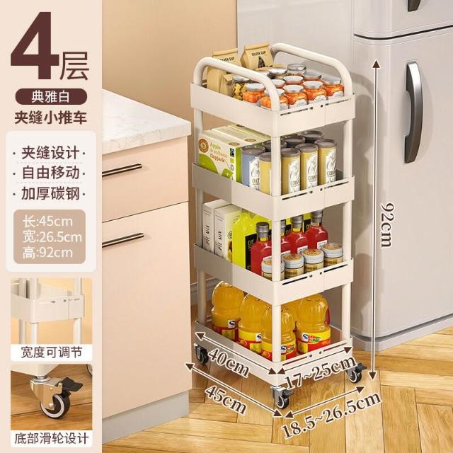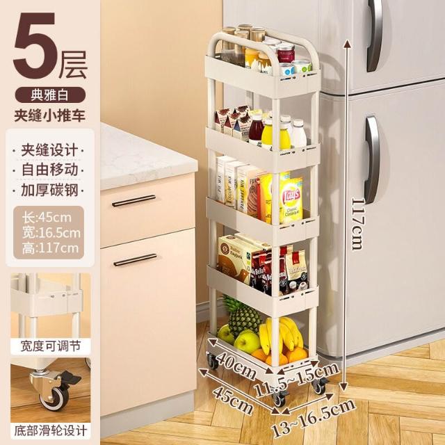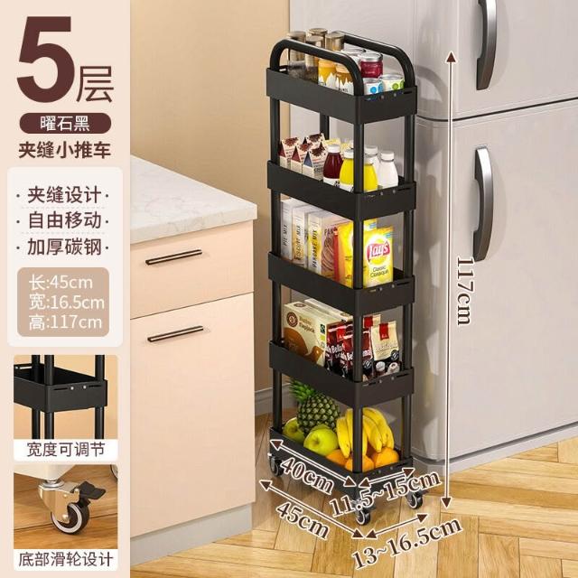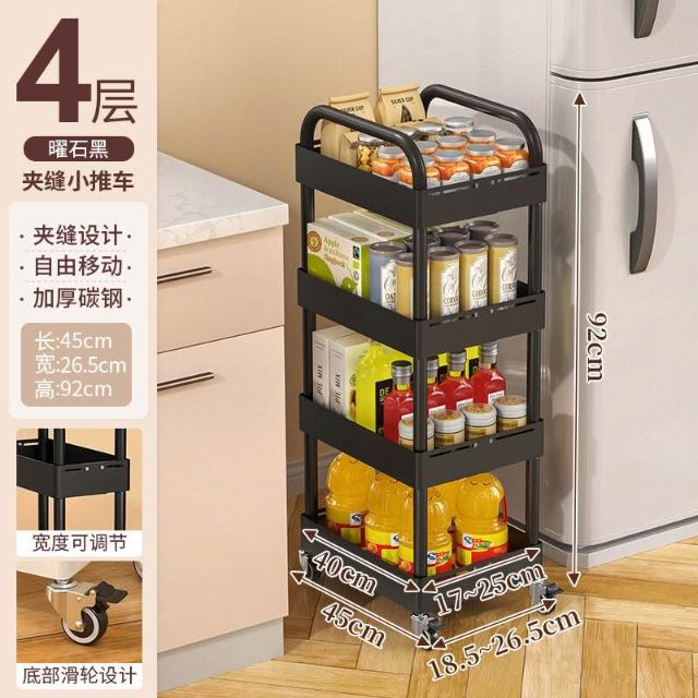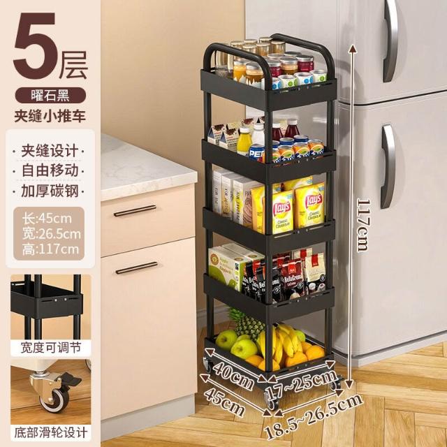 热销 廚房多功能夾縫置物架多層新款小推車可伸縮冰箱側面極窄縫收納架
