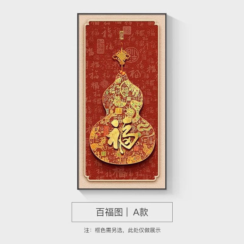 新品熱銷 吉祥葫蘆掛畫新中式福祿吉祥圖客廳入戶玄關裝飾畫正對門過道壁畫