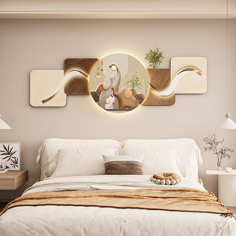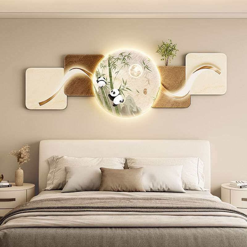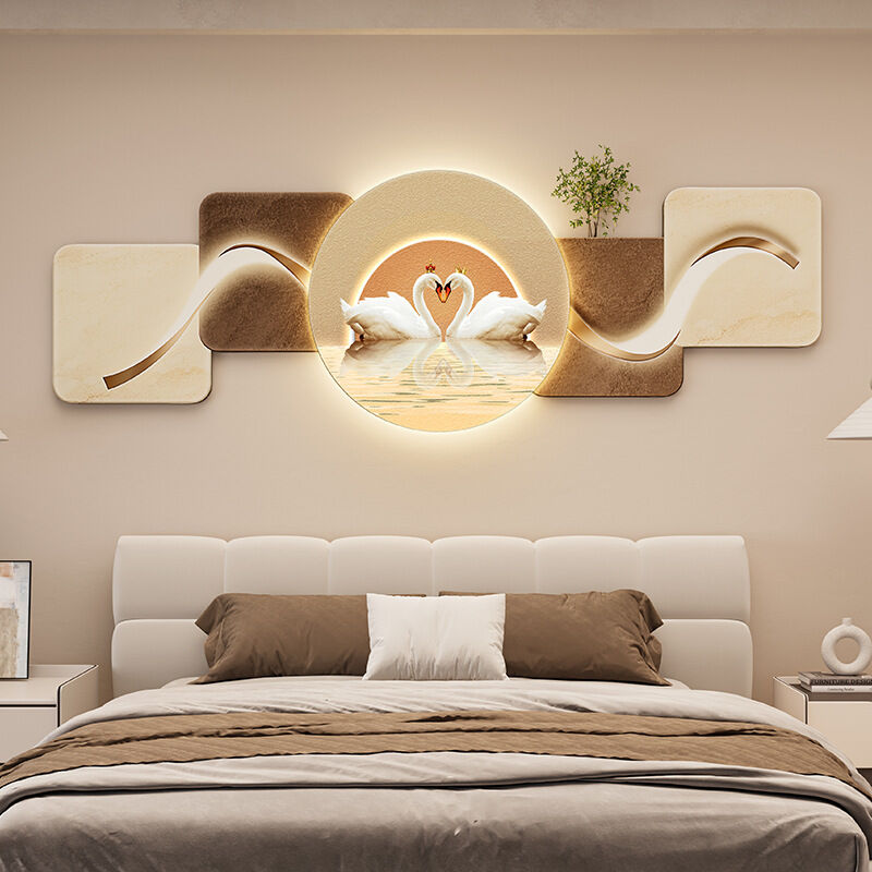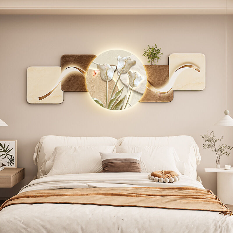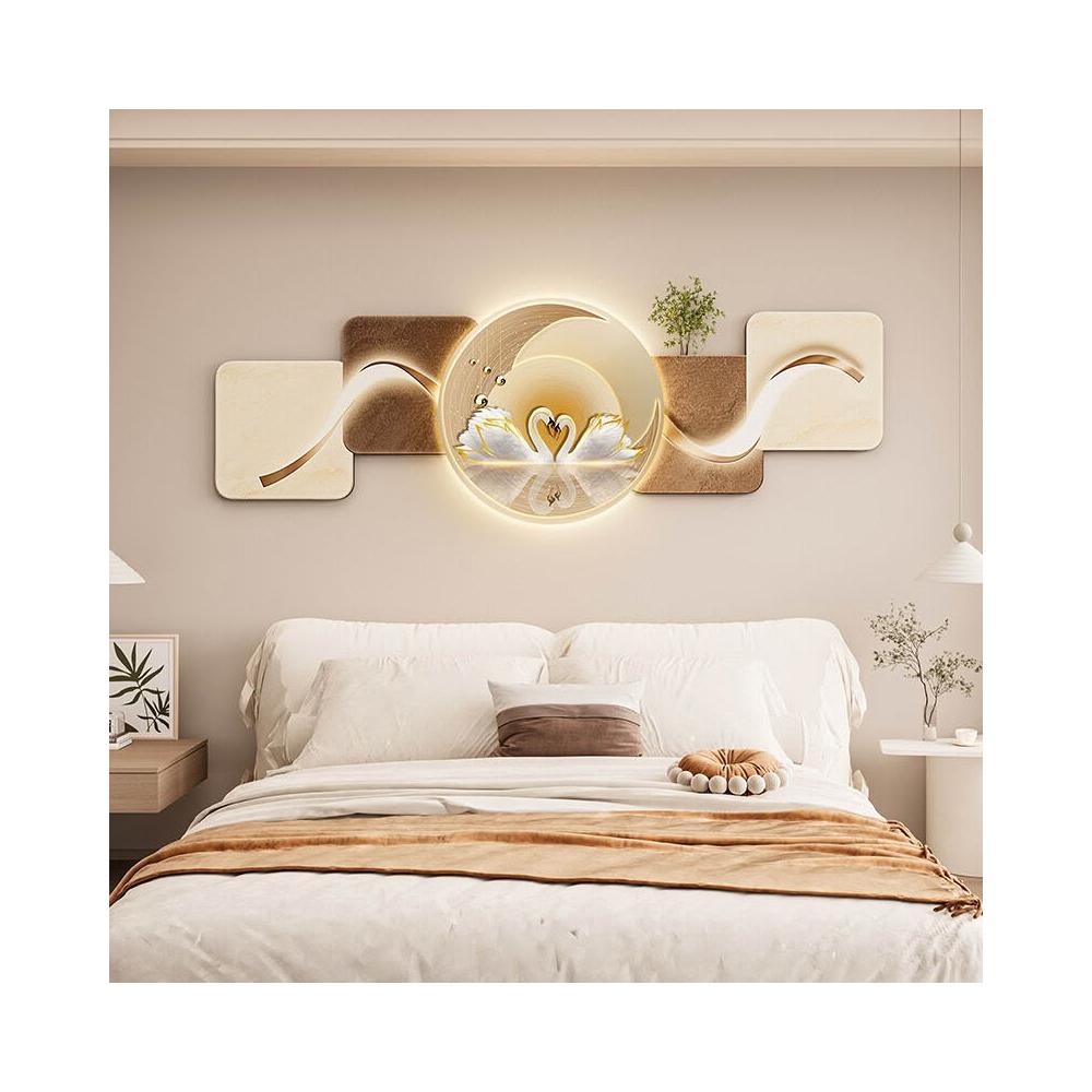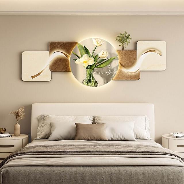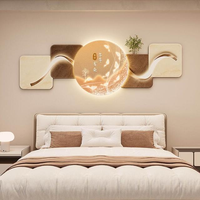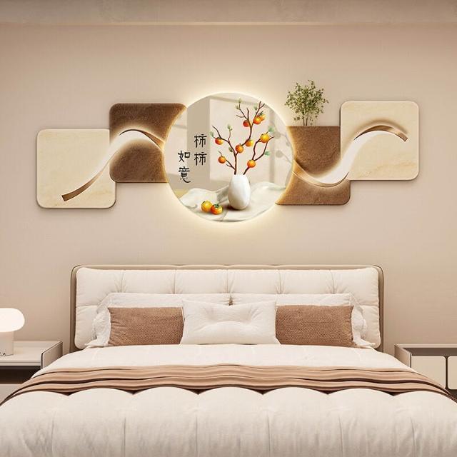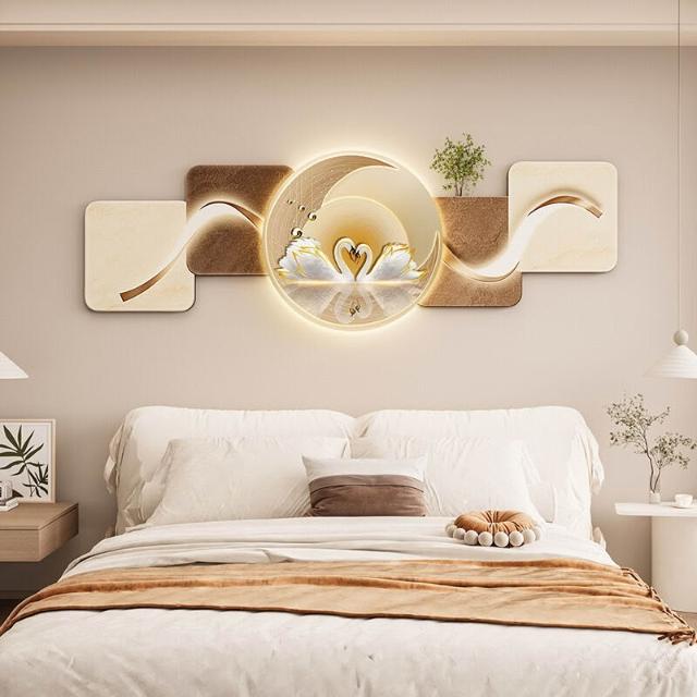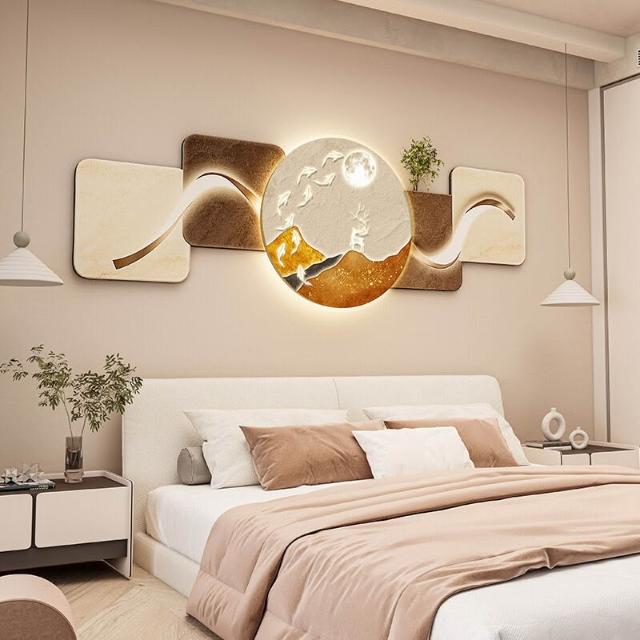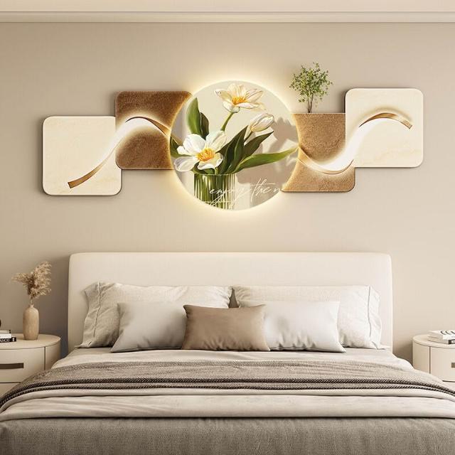 新品熱銷 現代簡約臥室裝飾畫LED燈橫幅主臥背景墻侘寂風高級感創意掛畫