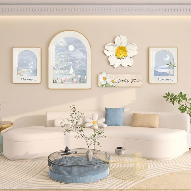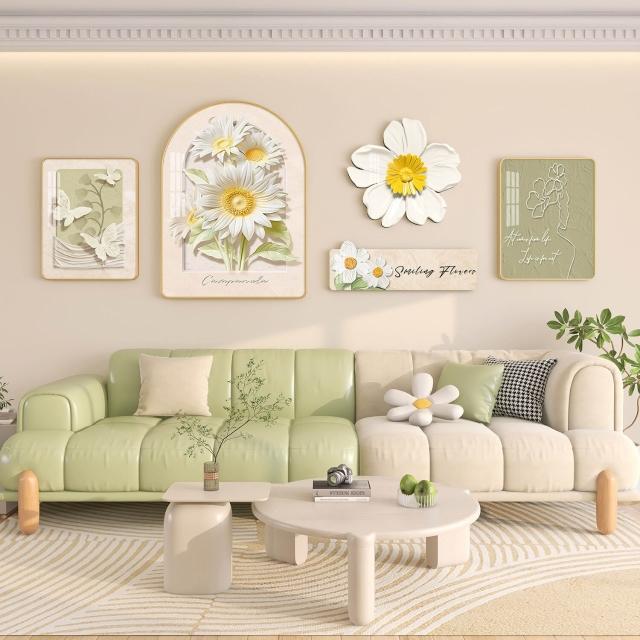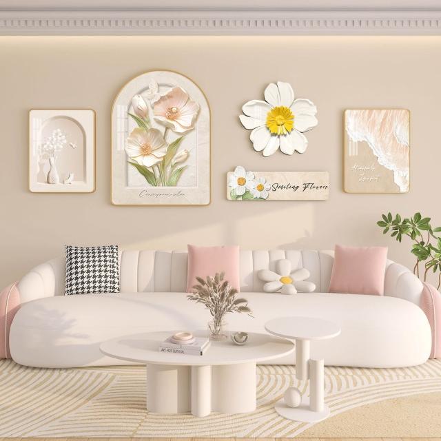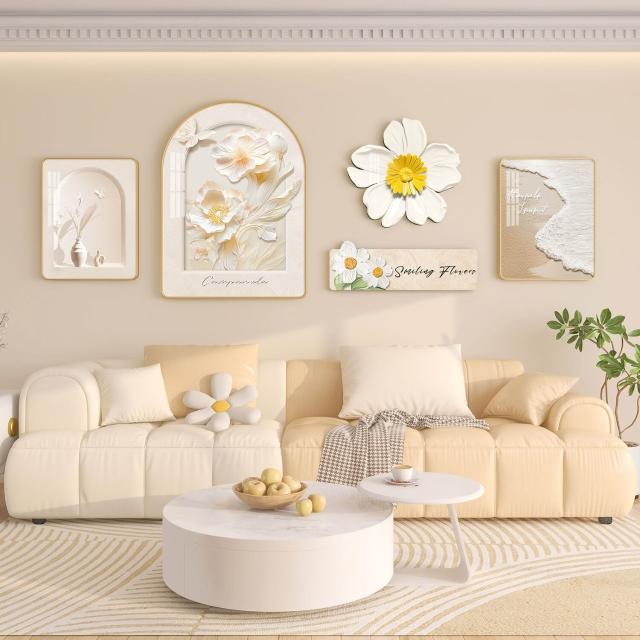 新品熱銷 奶油風客廳掛畫北歐沙發背景墻裝飾畫高級感大氣花卉綠植壁畫組合