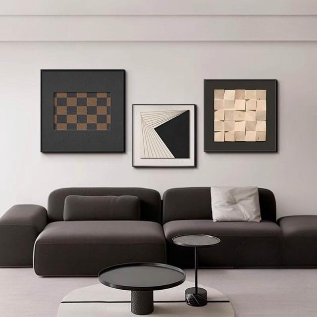 新品熱銷 簡約現代客廳裝飾畫高級感沙發背景壁畫黑白幾何抽象肌理三聯掛畫