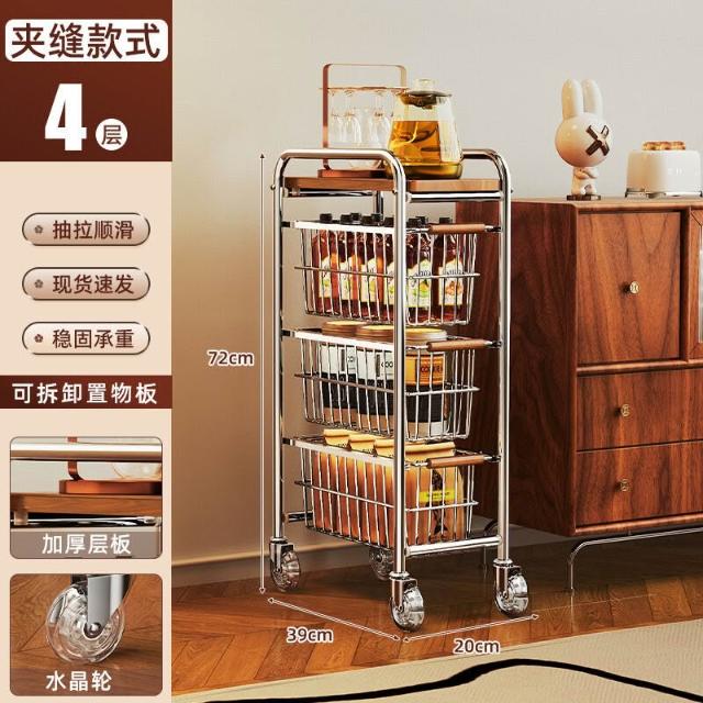 中古風夾縫小推車落地置物架客廳零食收納架極窄縫隙可移動儲物櫃 鐵架子