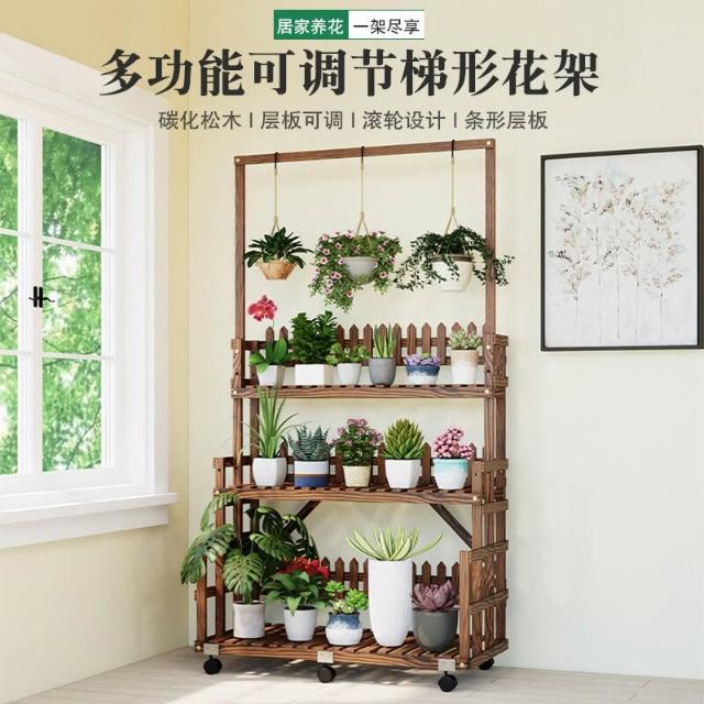 免運 陽臺防腐實木擺花架子落地式階梯式戶外靠墻簡約臺階吊籃花盆架