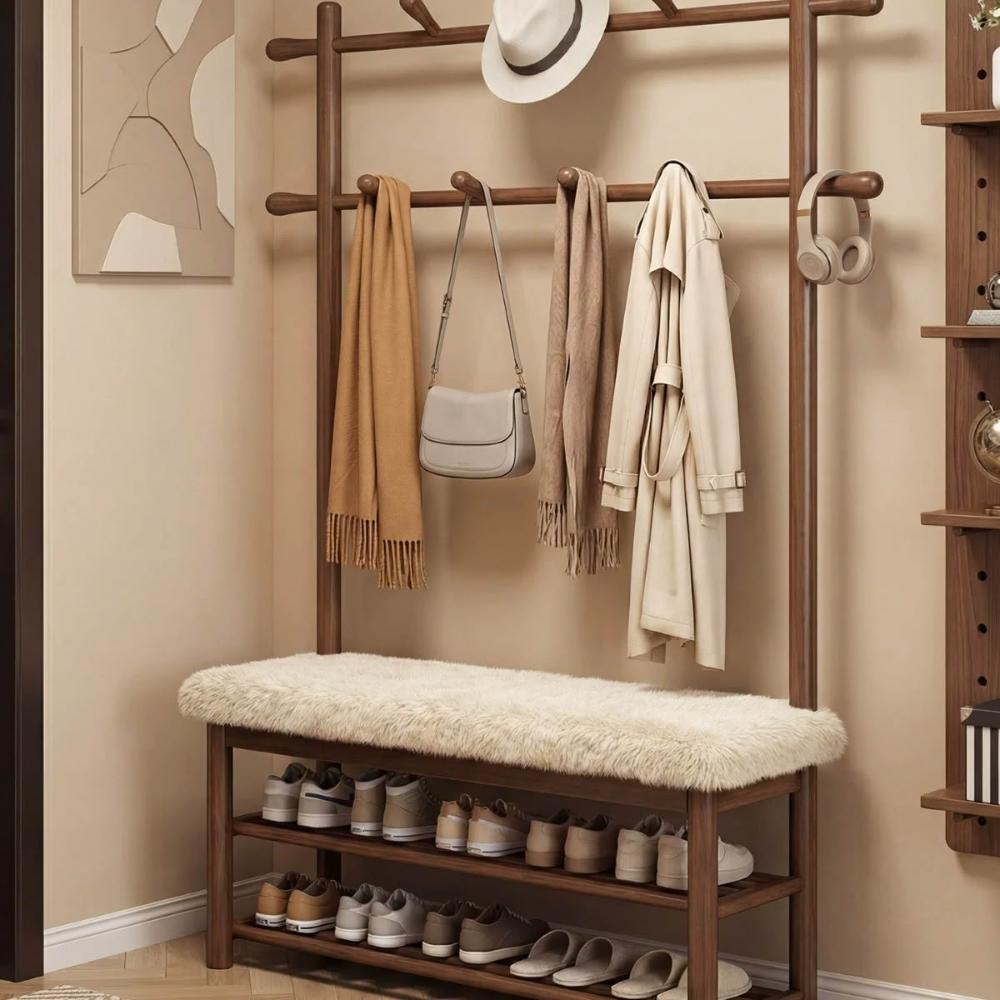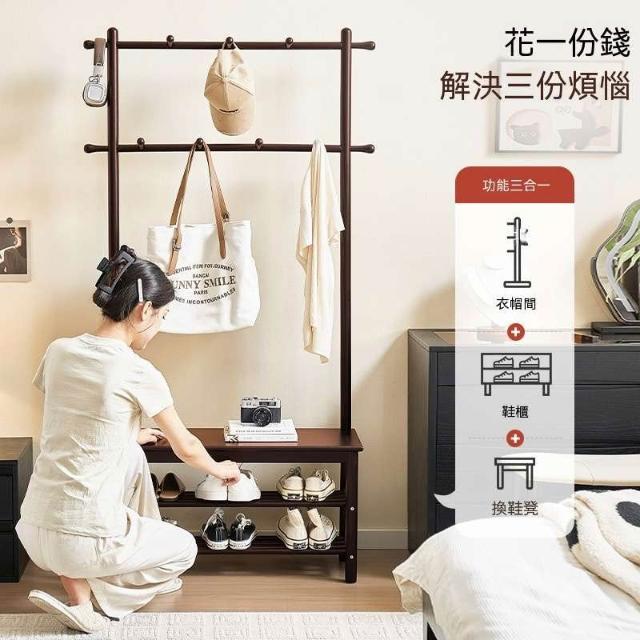 免運 實木換鞋凳掛衣架一體穿鞋凳進門凳入戶門口穿鞋櫃落地衣架衣帽架