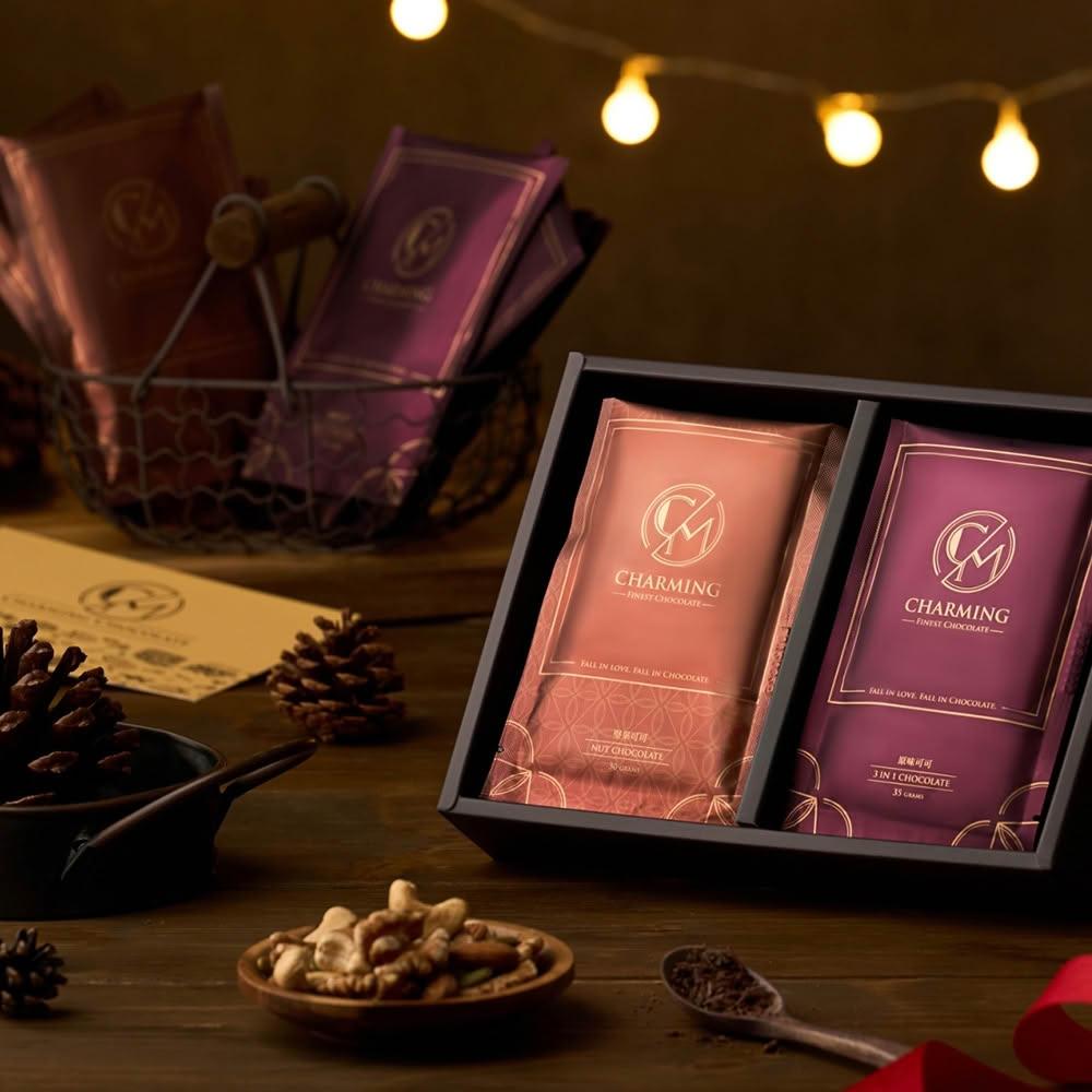 Charming 喬名巧克力原味+堅果可可 8入組禮盒(附品牌紙袋)|送禮首選 經典組合 減糖熱巧克力/冷飲皆宜