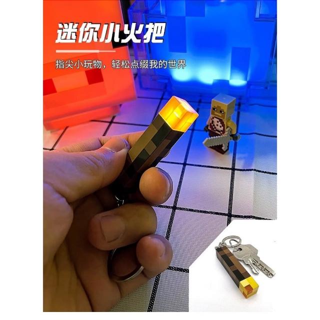 廢物專賣店 像素風發光火把鑰匙扣|我的世界 火把燈鑰匙圈 創意迷你吊飾 小夜燈 掛件 收藏裝飾 趣味小物 生日禮物 交換