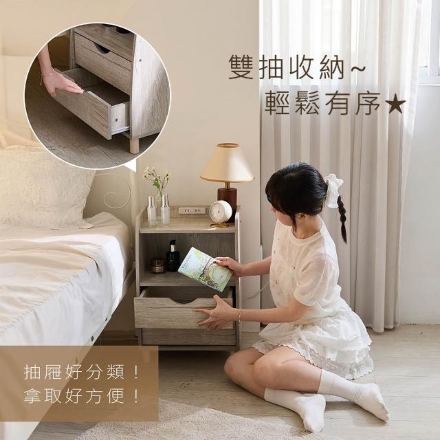 床頭櫃 收納櫃 小邊櫃 臥室家具 抽屜櫃|雙抽附插座床頭櫃 小坪數首選 實用收納【MIT台灣製造 台灣現貨】