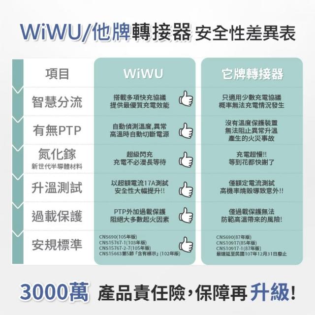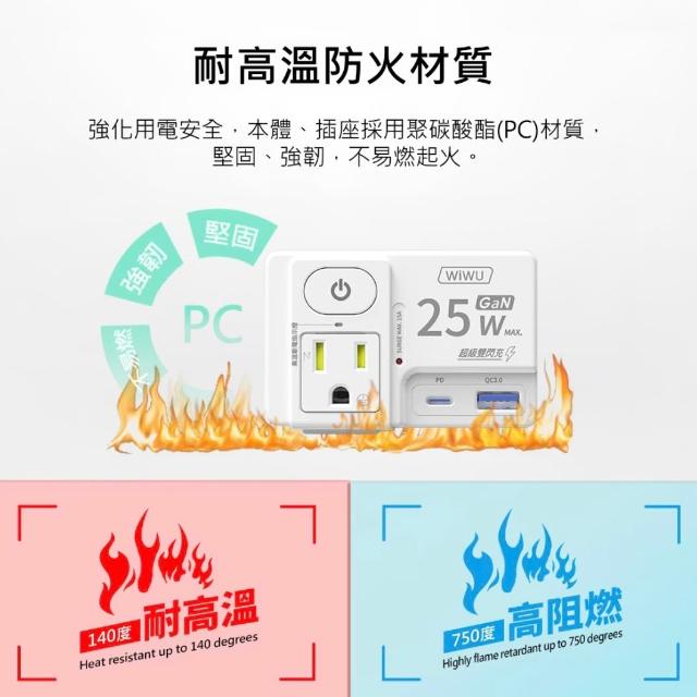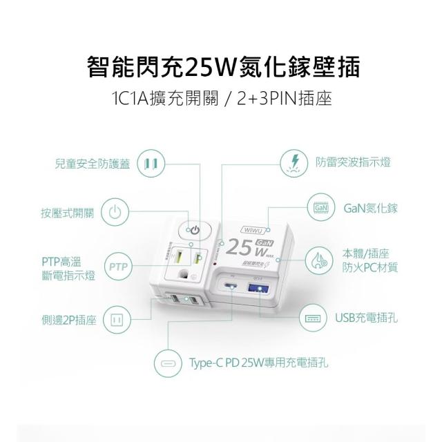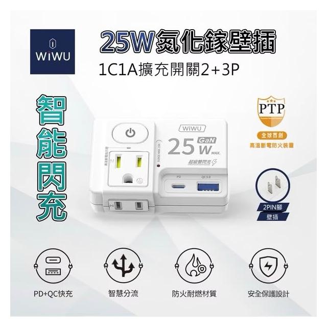 WiWUWEiZ 官方旗艦店 智能閃充25W氮化鎵1C1A擴充開關2 3P壁插-白 Wi-P01 多孔 高溫 自動斷電 支援快充