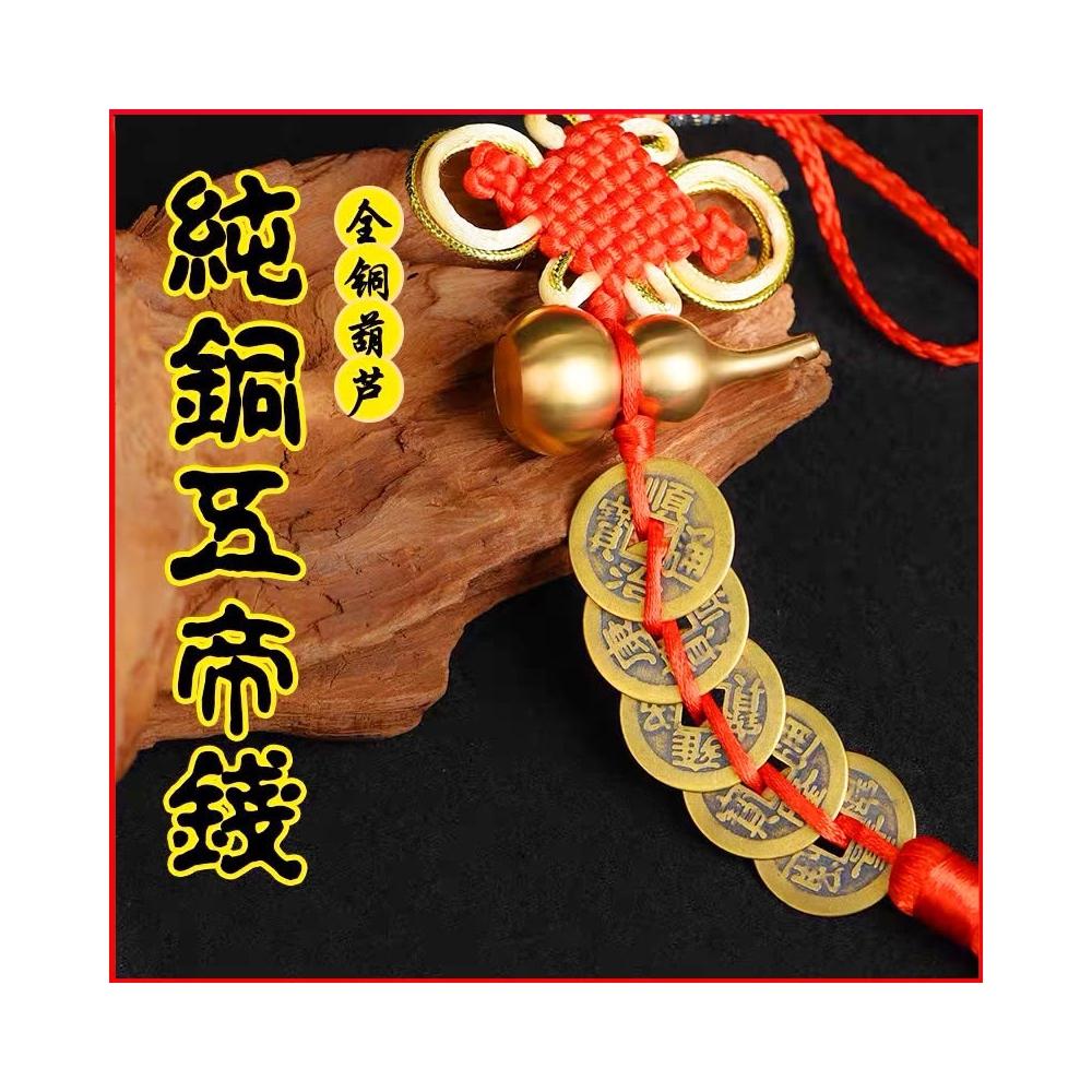 台灣現貨全銅葫蘆五帝錢 中國結真銅五帝錢仿古幣五帝銅錢 壓門檻過門石銅錢避邪聚財 虎年化太歲風水用品 隨身開運招財保平安