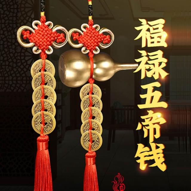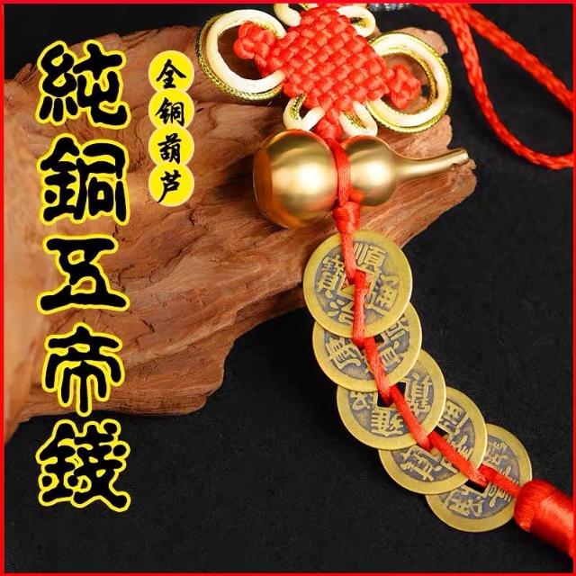 台灣現貨全銅葫蘆五帝錢 中國結真銅五帝錢仿古幣五帝銅錢 壓門檻過門石銅錢避邪聚財 虎年化太歲風水用品 隨身開運招財保平安