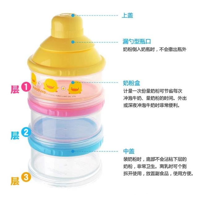 台灣現貨!台灣製!Piyopiyo黃色小鴨不易漏三層奶粉罐 寶寶外出便攜分裝盒 大容量儲存罐 每層附帶盒蓋可獨立使用