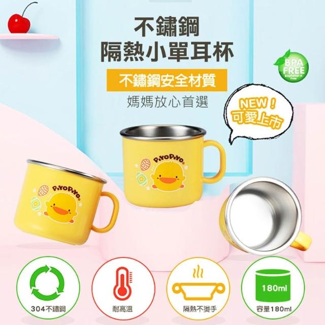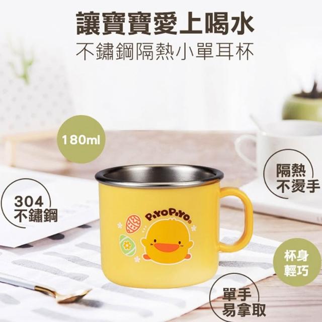 現貨!台灣製!Piyopiyo黃色小鴨不鏽鋼隔熱小單耳杯180ml 幼兒園學習杯 漱口杯 兒童馬克杯 水杯 鋼杯 單耳杯