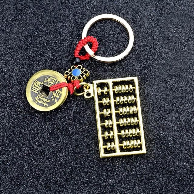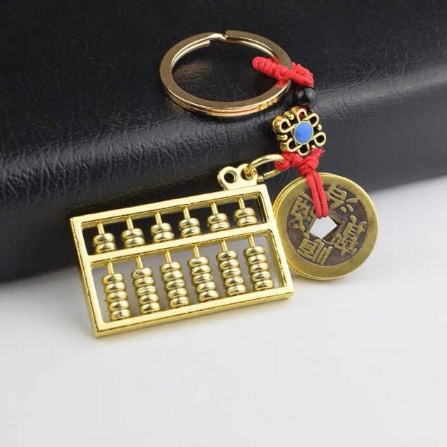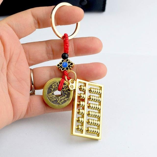 台灣現貨 五帝錢真算盤鑰匙扣 真銅五帝銅錢鎖匙扣 五個銅錢如意算盤鑰匙圈避邪聚財 風水用品開運招財 汽車掛件車內吊墜裝飾