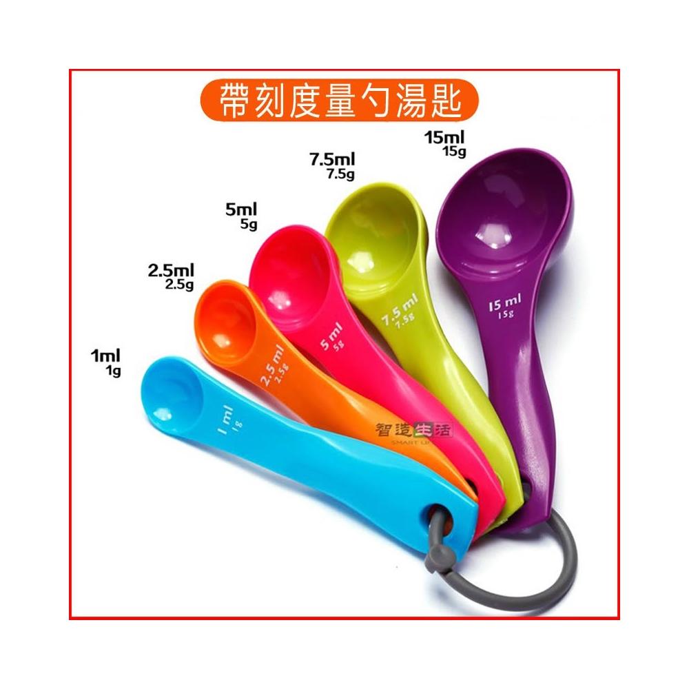 現貨!!帶刻度量勺湯匙5件套裝 烘焙工具 烘培度量勺 汤匙茶匙 克勺 奶粉勺调料勺奶茶勺毫升勺 汤匙茶匙 廚房量匙調味匙