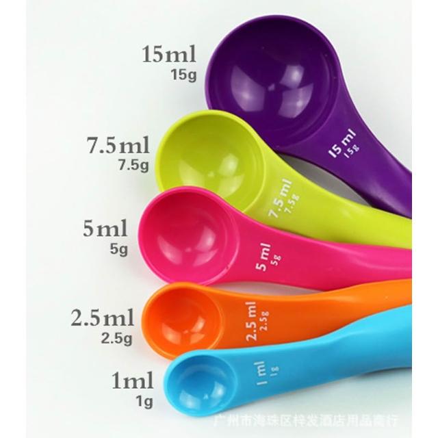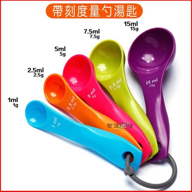 現貨!!帶刻度量勺湯匙5件套裝 烘焙工具 烘培度量勺 汤匙茶匙 克勺 奶粉勺调料勺奶茶勺毫升勺 汤匙茶匙 廚房量匙調味匙
