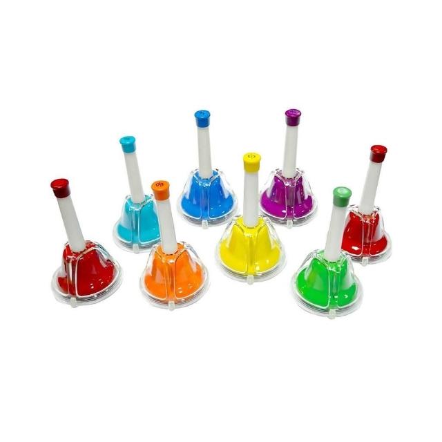 柚子樂器台灣製造 彩虹8音桌鐘 桌鈴 手搖按式2用 TOUCH BELLS 幼兒音樂 奧福 全齡樂器|柚子樂器