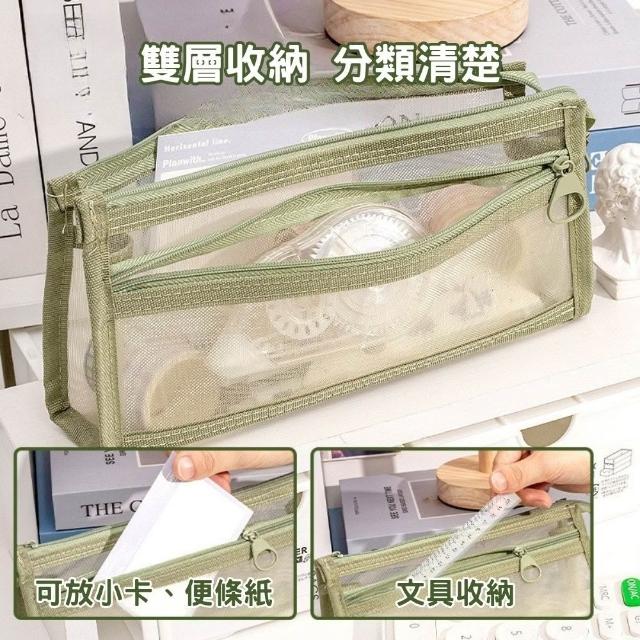 網紗筆袋 網紗鉛筆盒 雙層筆袋 鉛筆袋 透明筆袋 大容量筆袋 文具袋 筆袋大容量 紗網筆袋