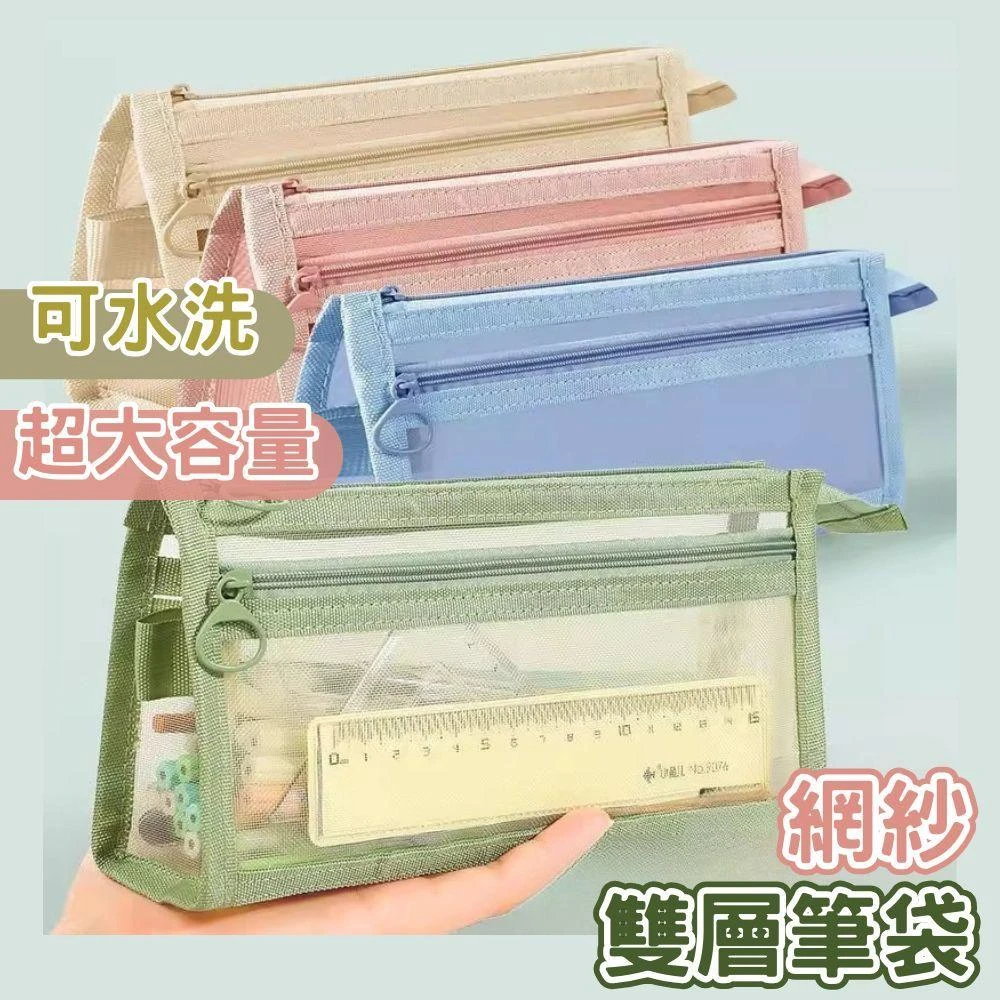 網紗筆袋 網紗鉛筆盒 雙層筆袋 鉛筆袋 透明筆袋 大容量筆袋 文具袋 筆袋大容量 紗網筆袋