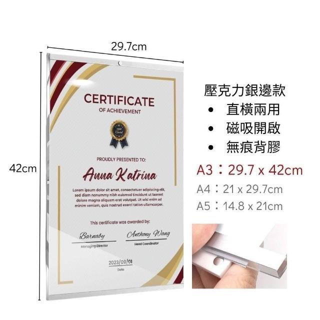 獎狀框 證書框 磁性展示貼 A3A4獎狀框 相框 磁吸相框 壁掛相框 海報框 壓克力海報框