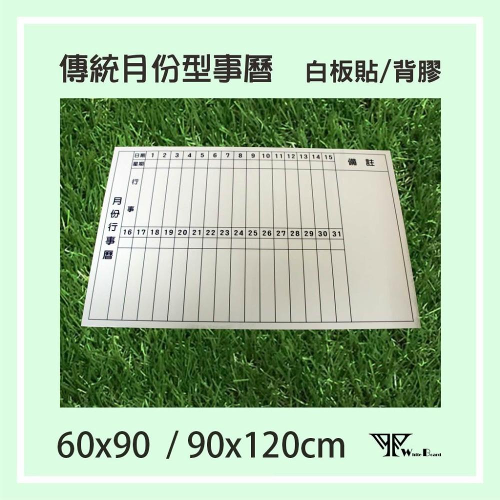 WTB白板貼紙傳統月份行事曆 60x90/90x120 (大尺寸) 月曆白板貼紙 無磁性 可擦寫