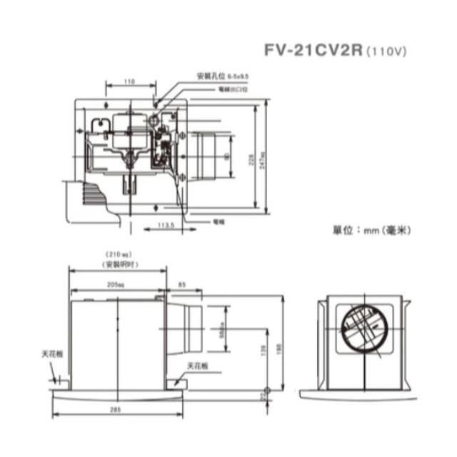 Panasonic 國際牌 FV-21CV2R-浴室換氣扇 靜音型換氣扇 抽風扇 排風機 浴室風扇 (110V/220V) 衛浴設備 換氣設備