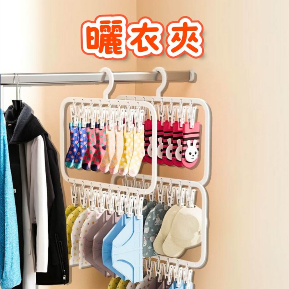 曬衣夾 曬衣架 襪子夾 衣櫃收納 雙層 多夾 兒童衣架 掛衣架 曬襪夾 衣架夾