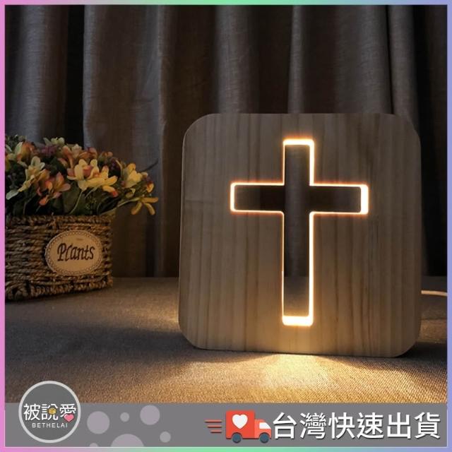 實木雕刻十字架燈 USB燈 基督教禮品 教會佈置 小夜燈 福音禮品 教會禮品 受洗禮物 交換禮物 生日禮物