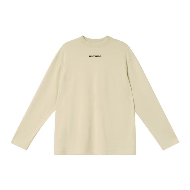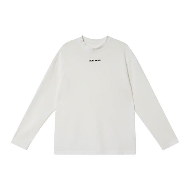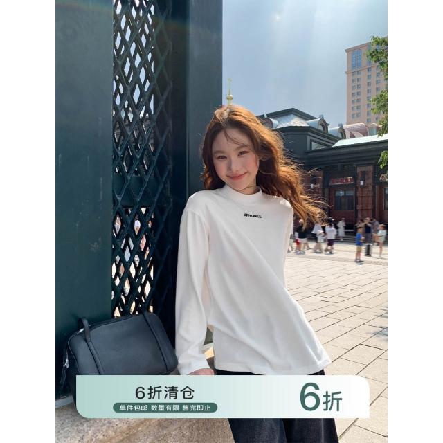 半高領植絨字母印花長袖t恤女春季新款寬鬆簡約內搭上衣