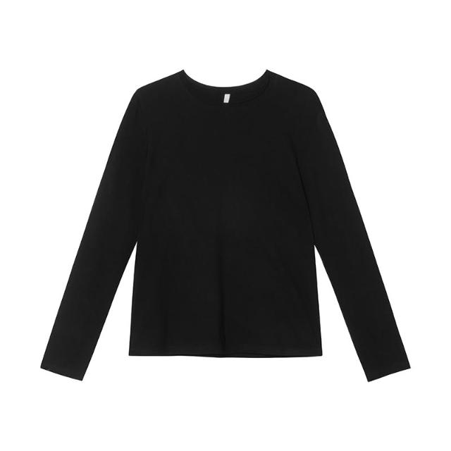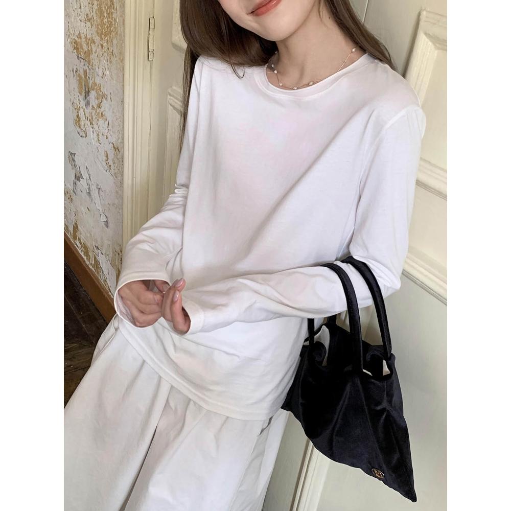 純色寬鬆純棉長袖t恤女新款小個子簡約內搭打底衫