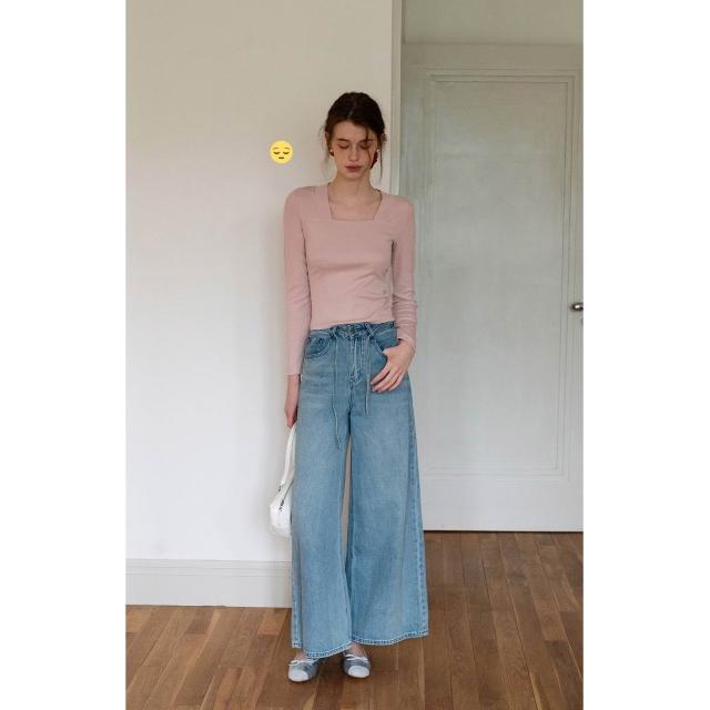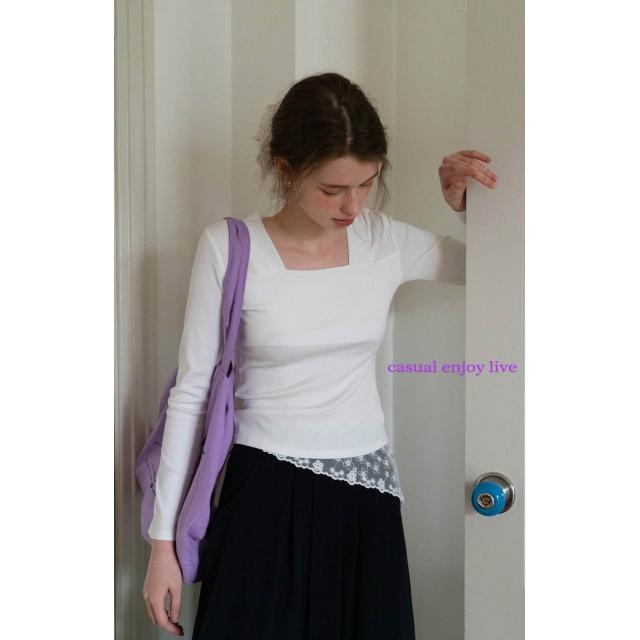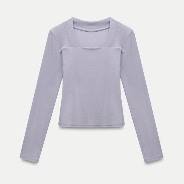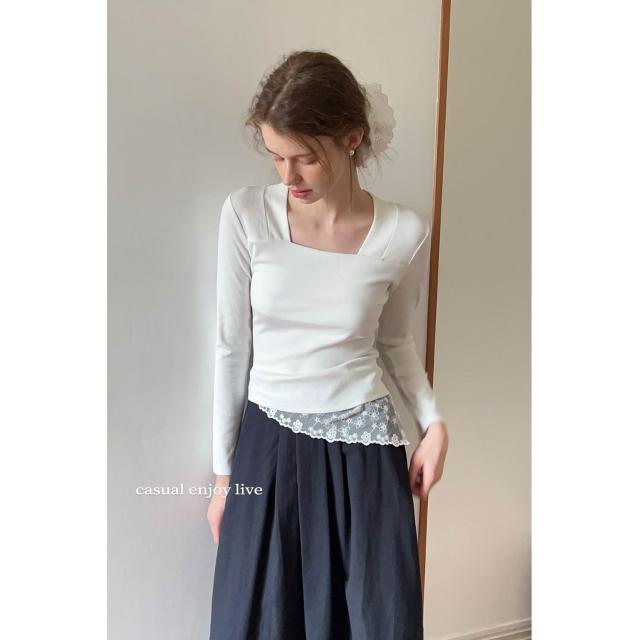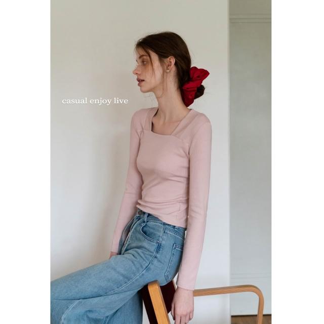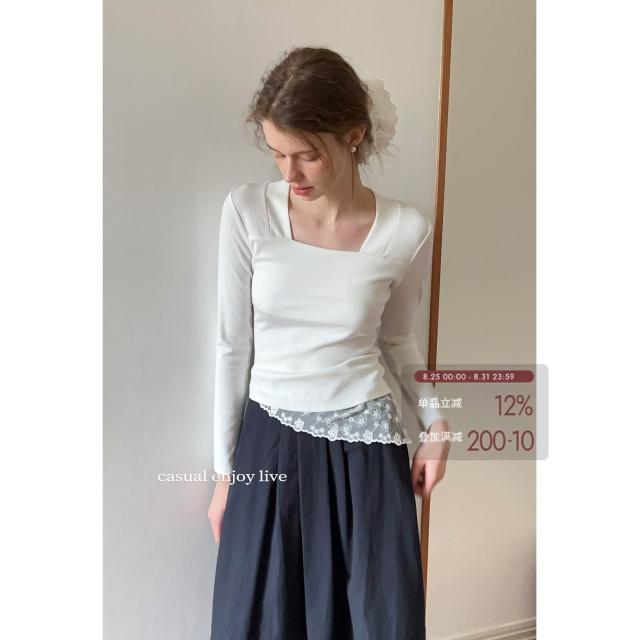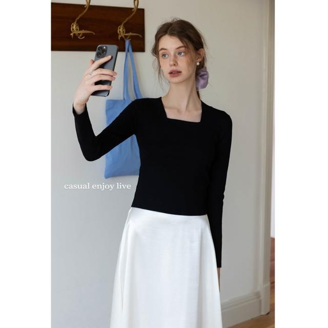 簡約多色方領修身長袖T恤女2025秋季休閒顯瘦氣質可內搭上衣