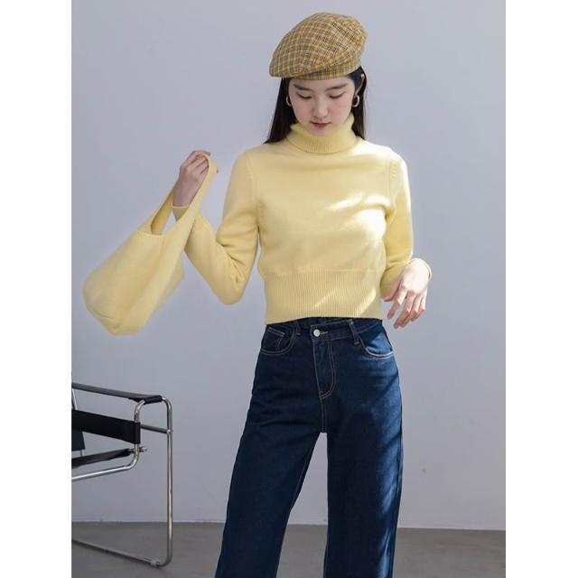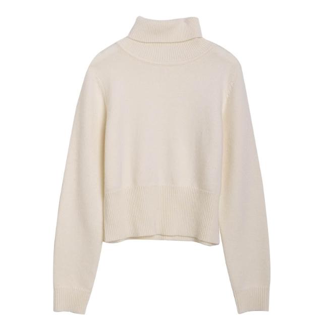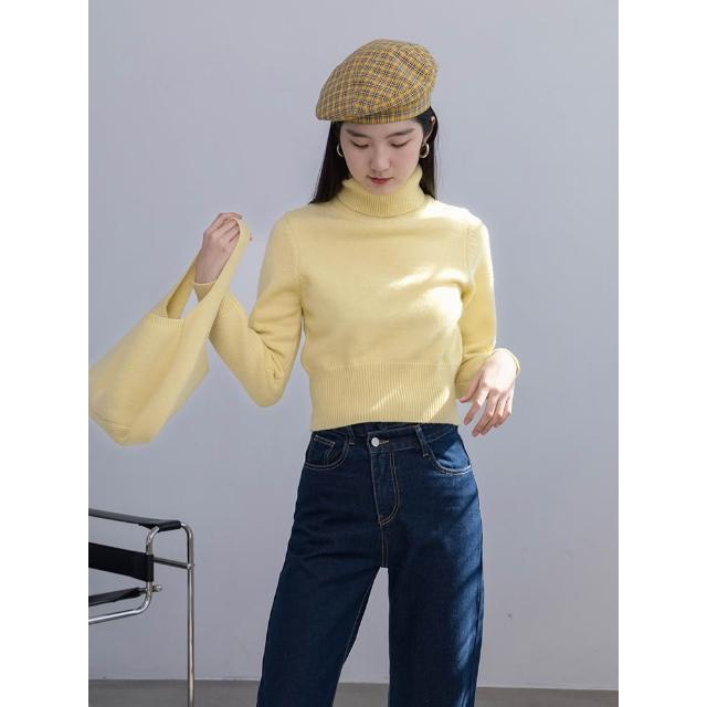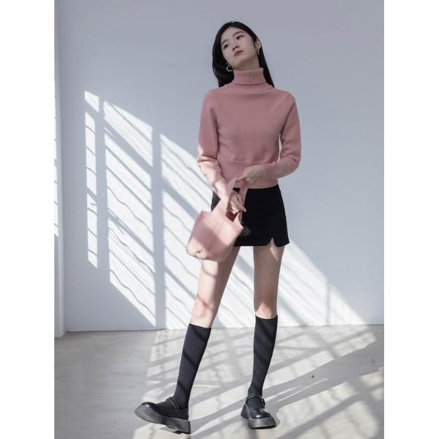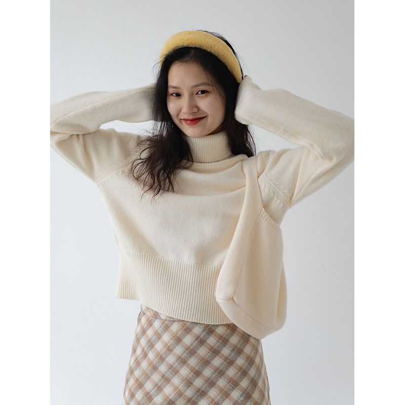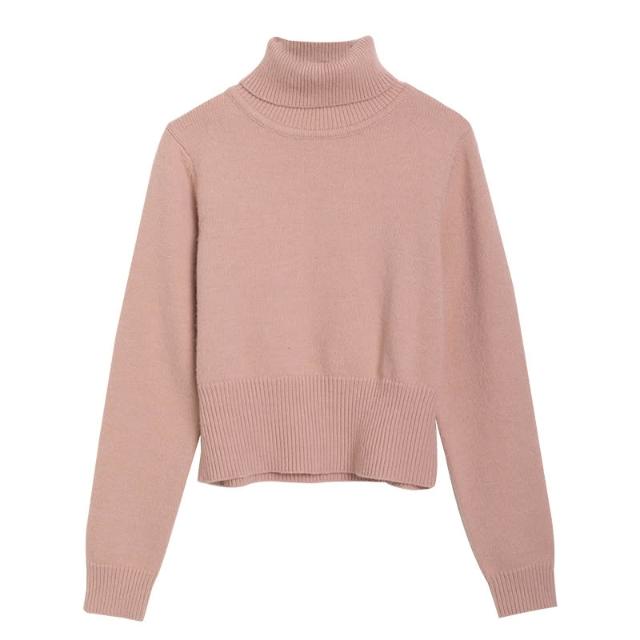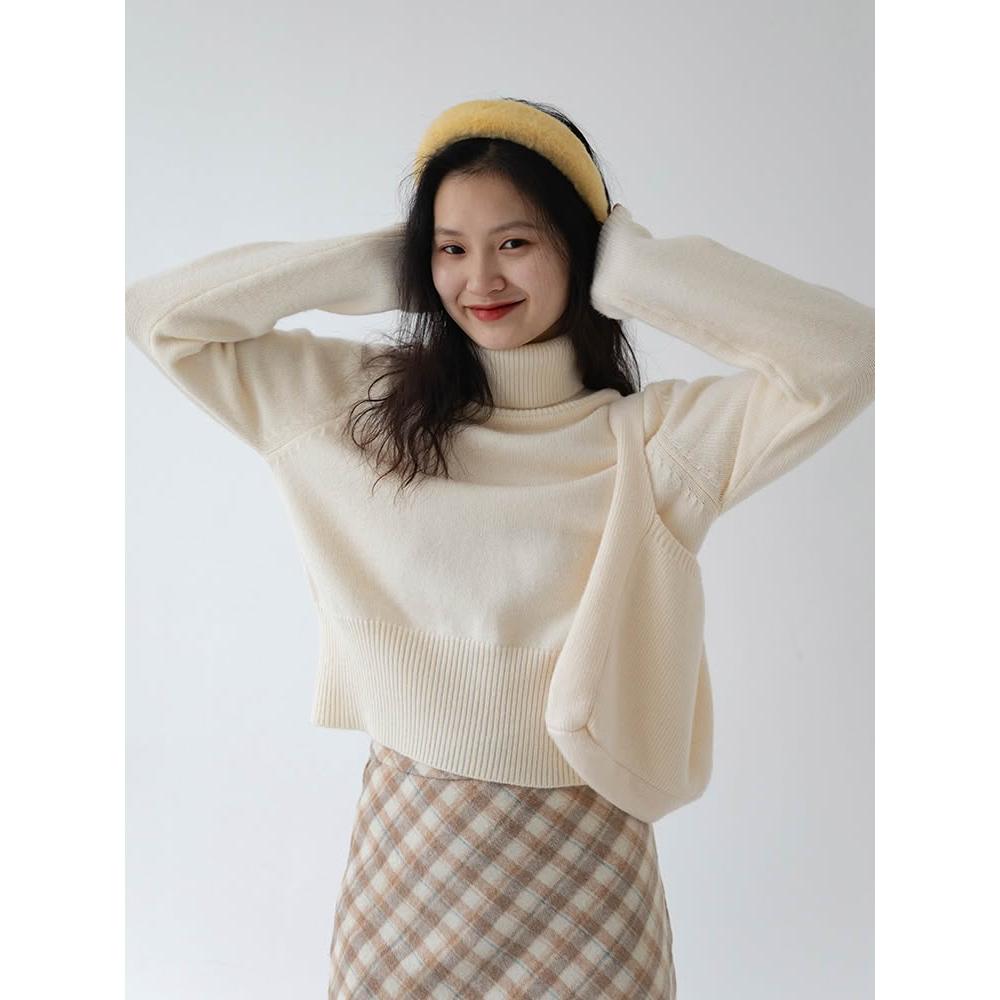 高領毛衣女2024秋冬新款寬鬆慵懶風短款內搭溫柔毛針織上衣