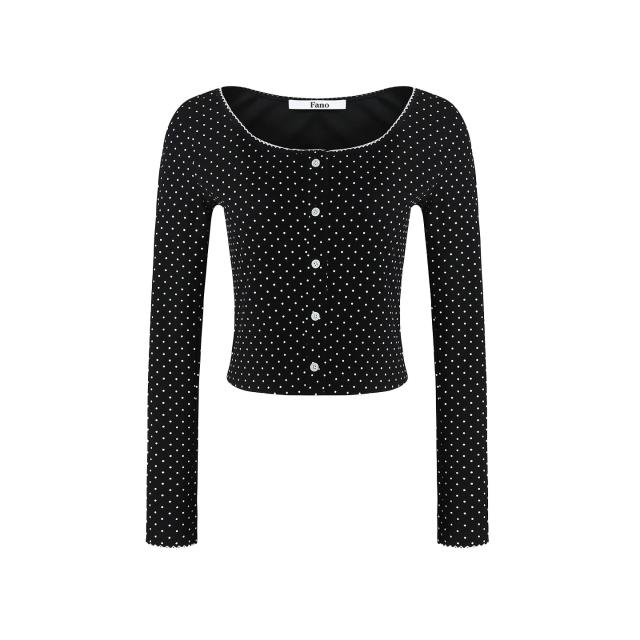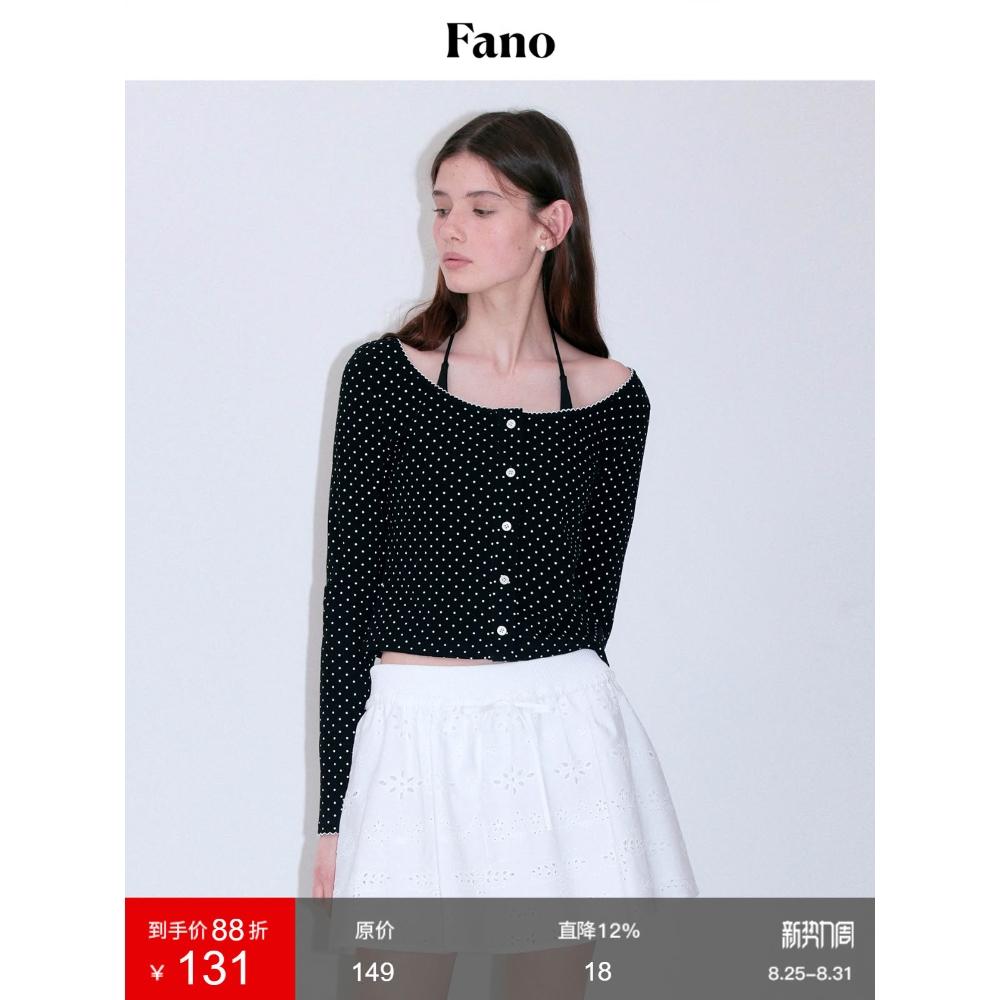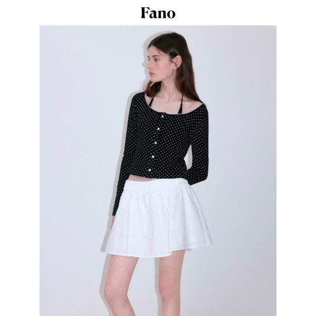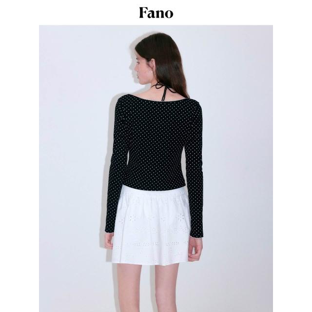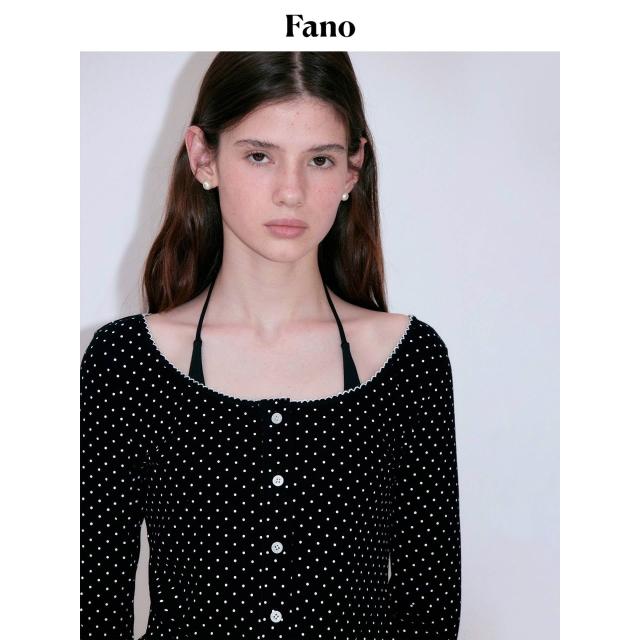 範洛Fano 法式浪漫波點撞色月牙邊大圓領針織毛衣女上衣