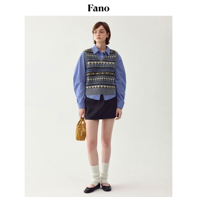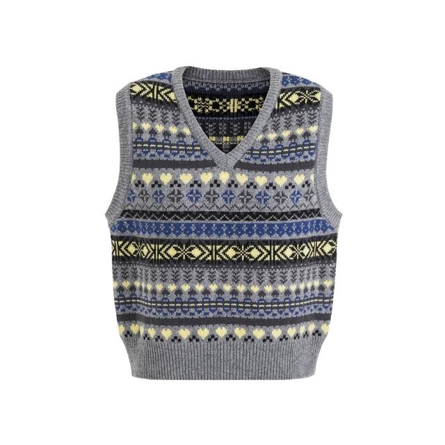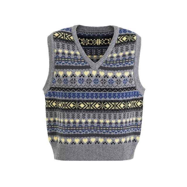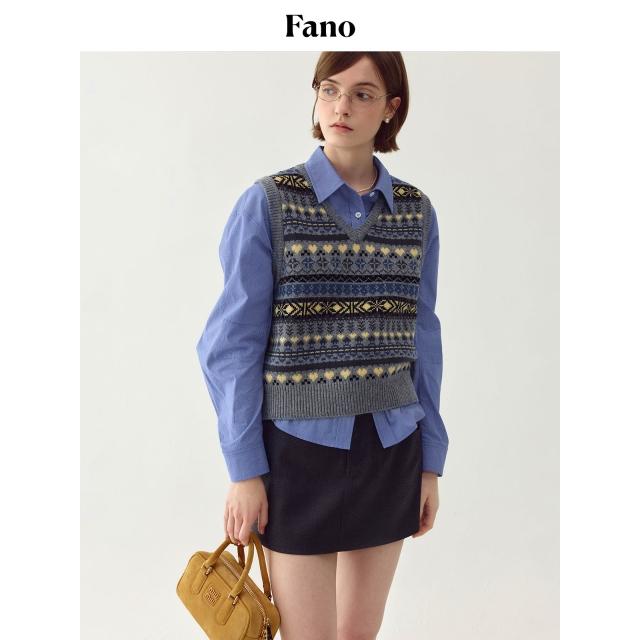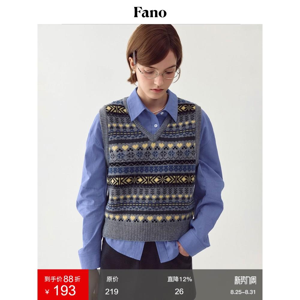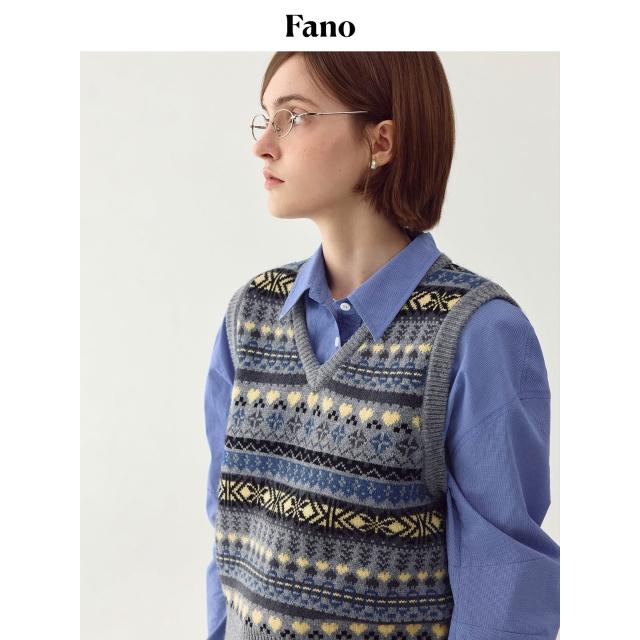 範洛Fano 重磅30羊毛疊穿百搭費爾島愛心雪花背心針織上衣