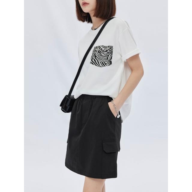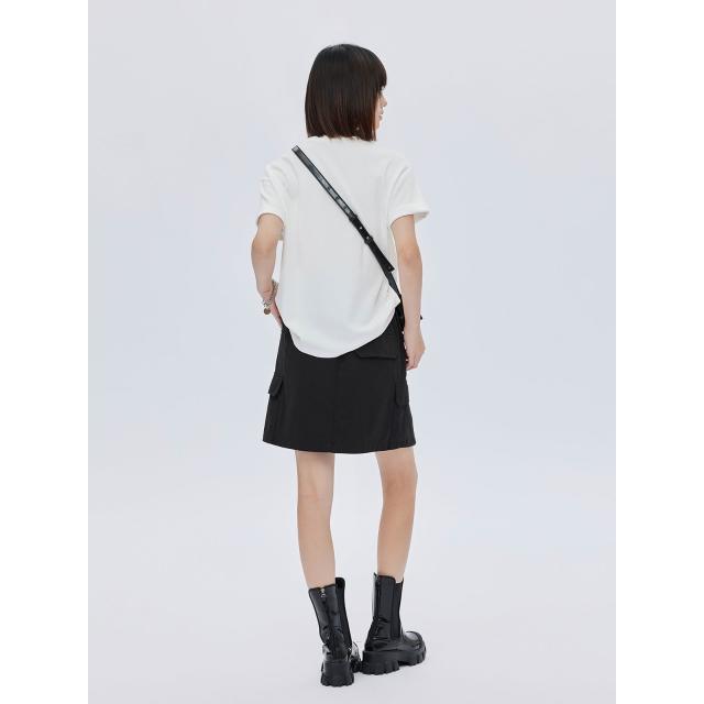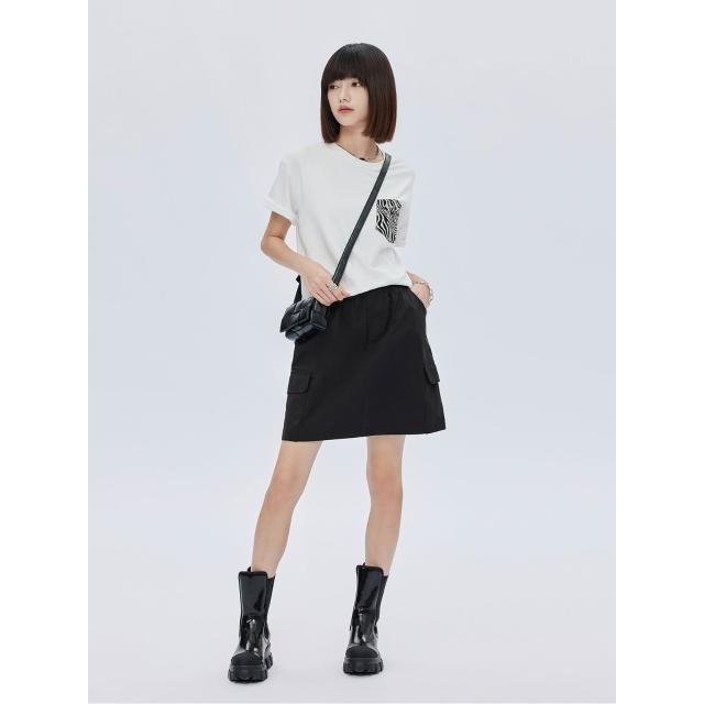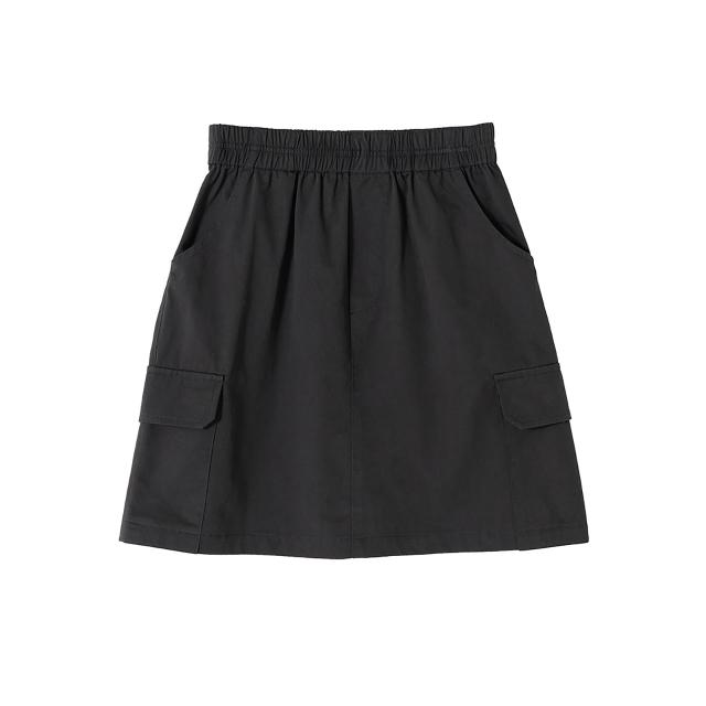 鬆緊腰工裝風口袋短裙設計感小衆2025新款夏季黑色高腰a字短裙