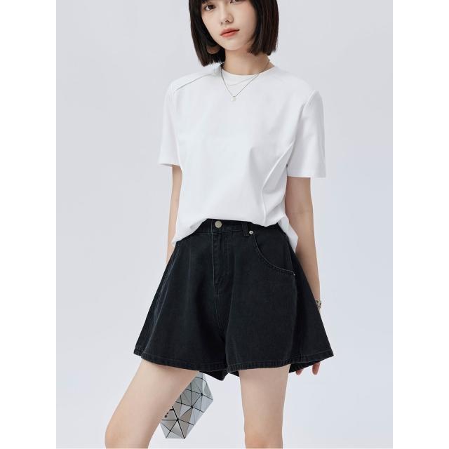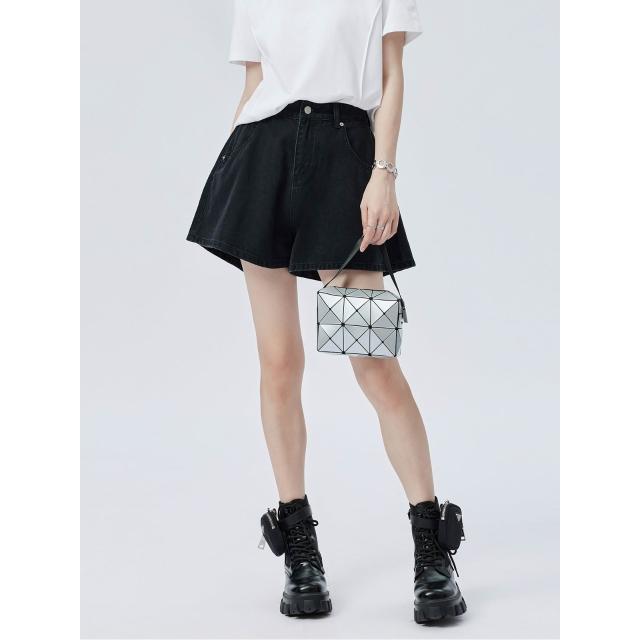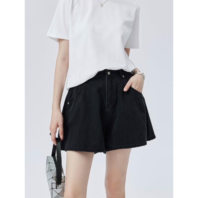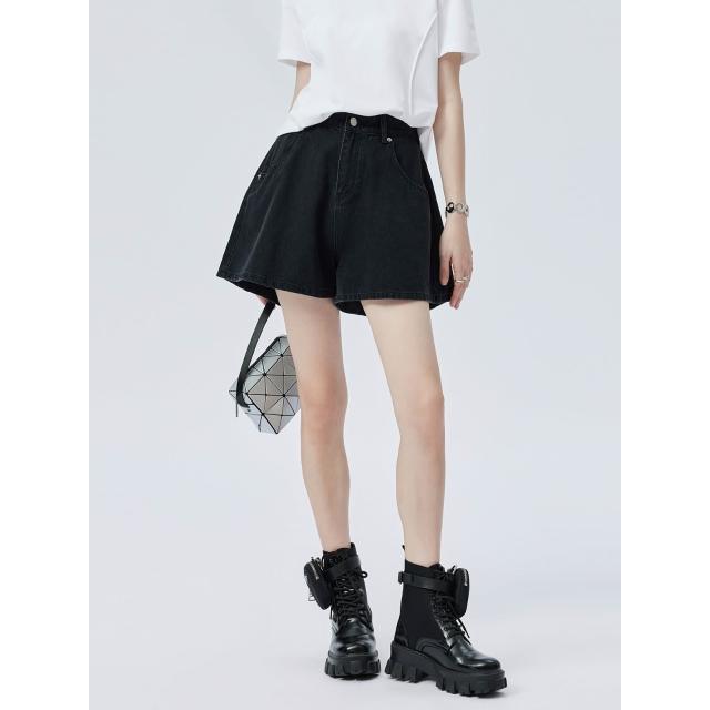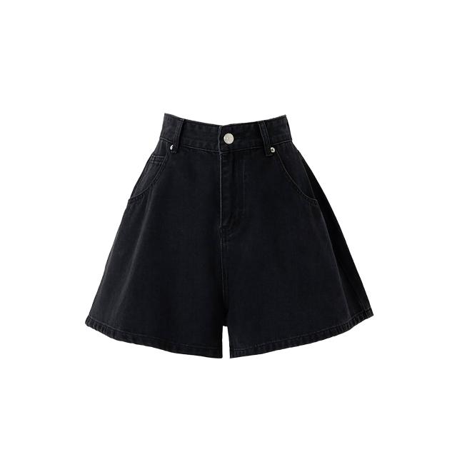 極簡風A字高腰闊腿含棉2025年新款休閒顯腿長黑色牛仔短褲夏季女