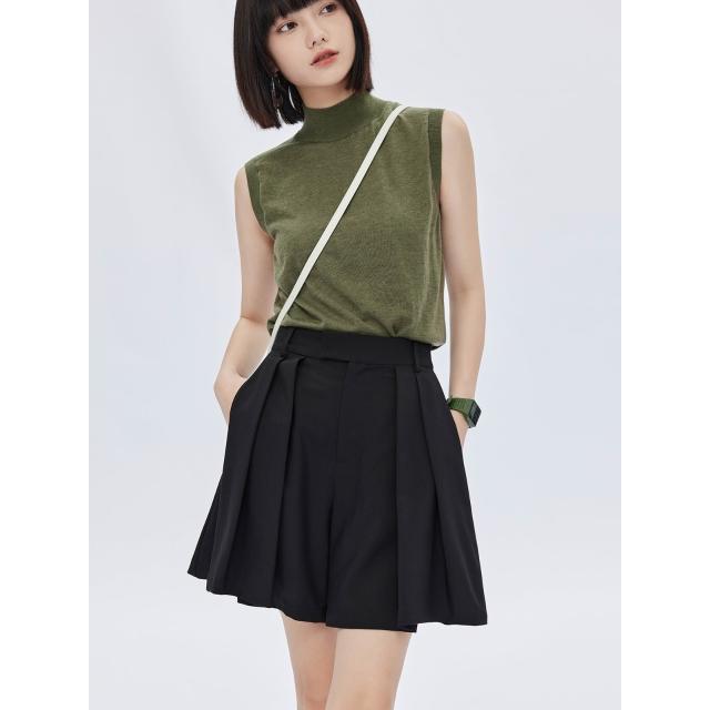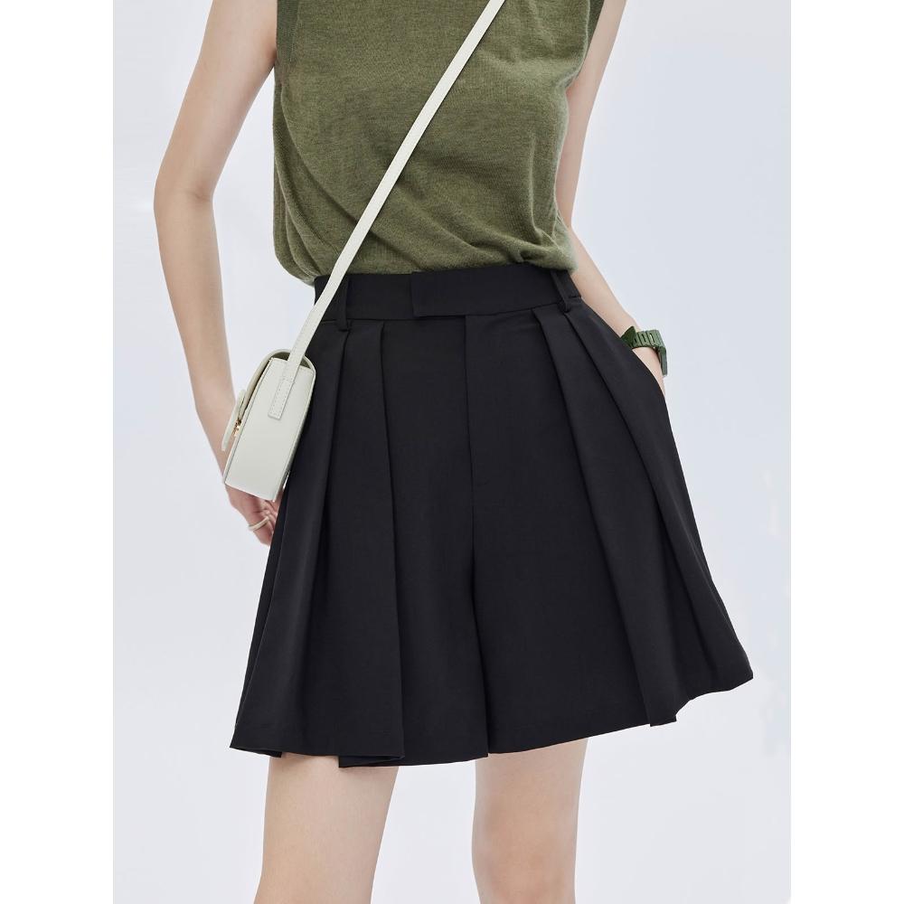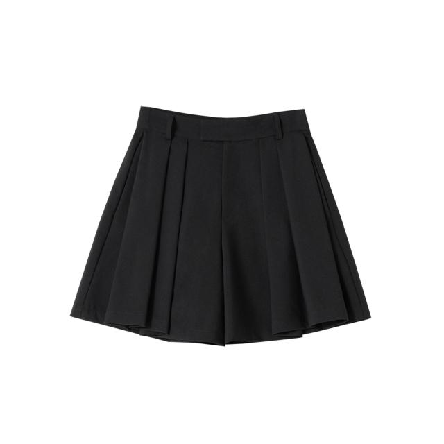 學院風高腰百褶裙褲2025年新款夏季設計感小衆休閒西裝黑色短褲女