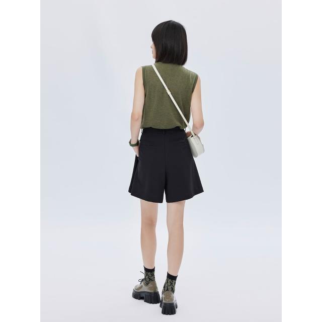 學院風高腰百褶裙褲2025年新款夏季設計感小衆休閒西裝黑色短褲女