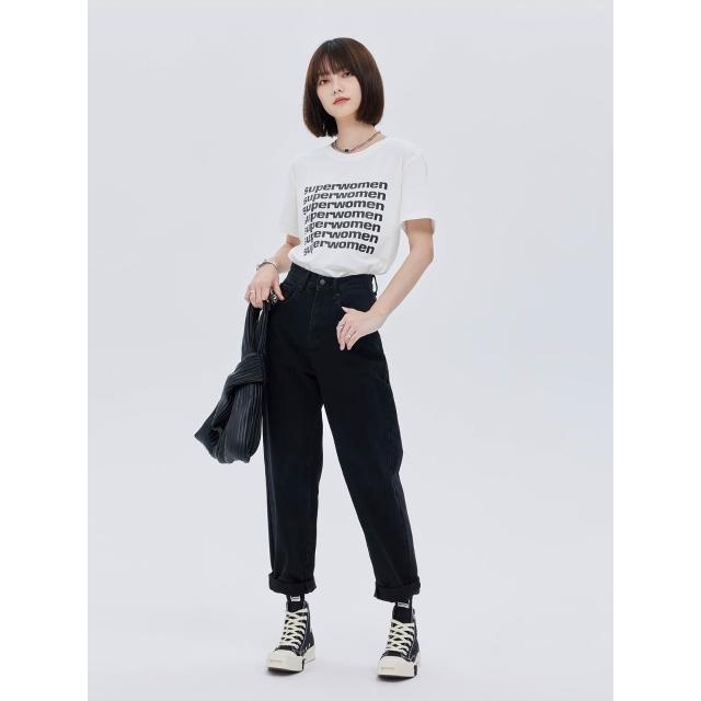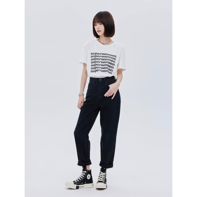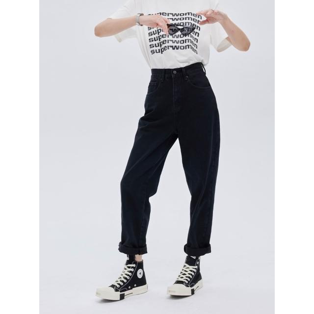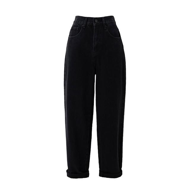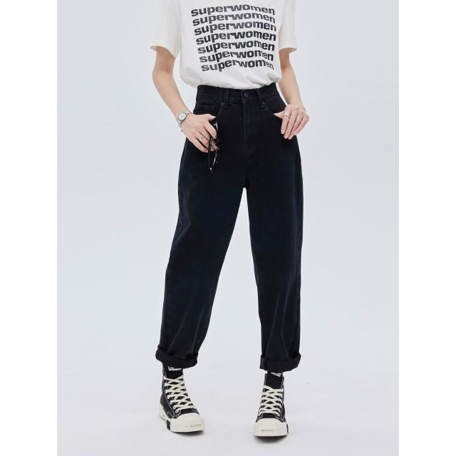 復古長褲水洗老爹褲2025年新款春秋黑色顯瘦寬鬆高腰直筒牛仔褲女