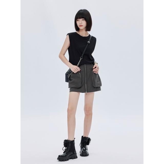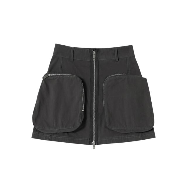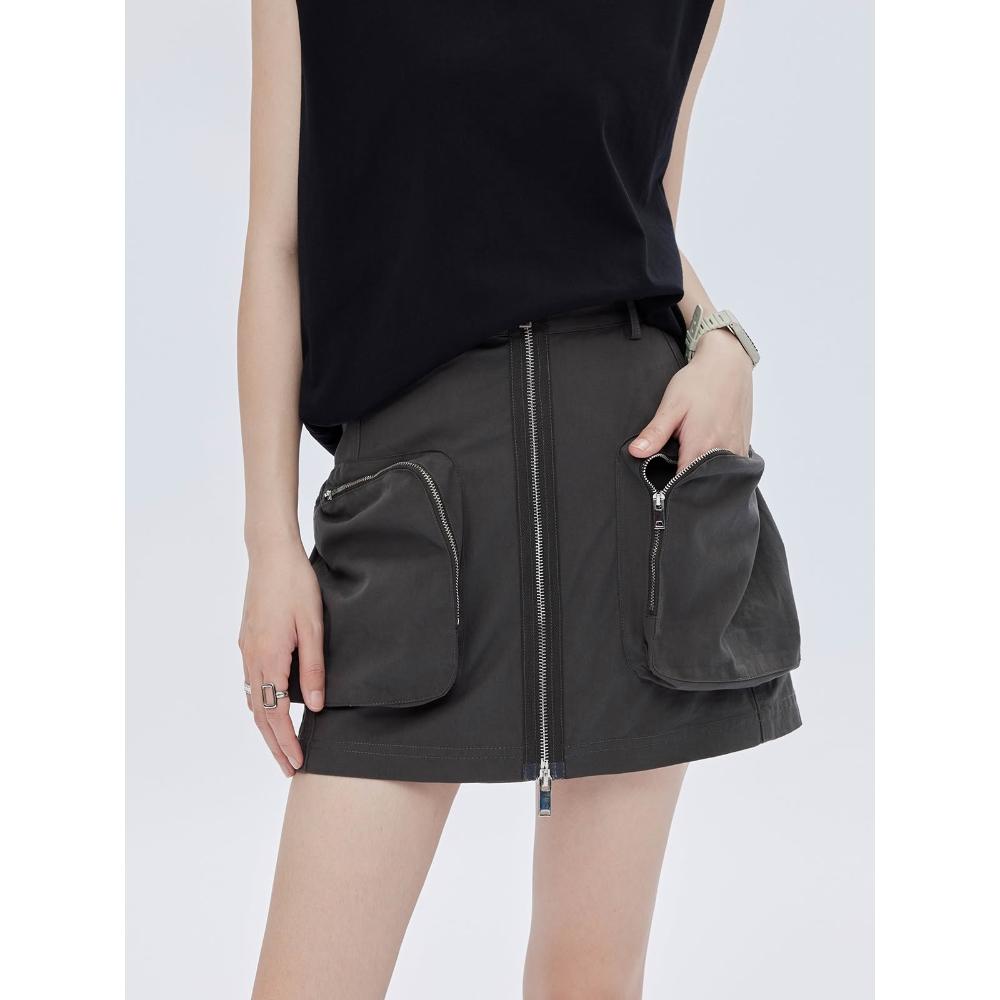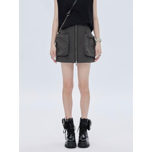美式工裝A字短裙設計師款復古拉鍊頭口袋寬鬆高腰灰色短裙女夏季